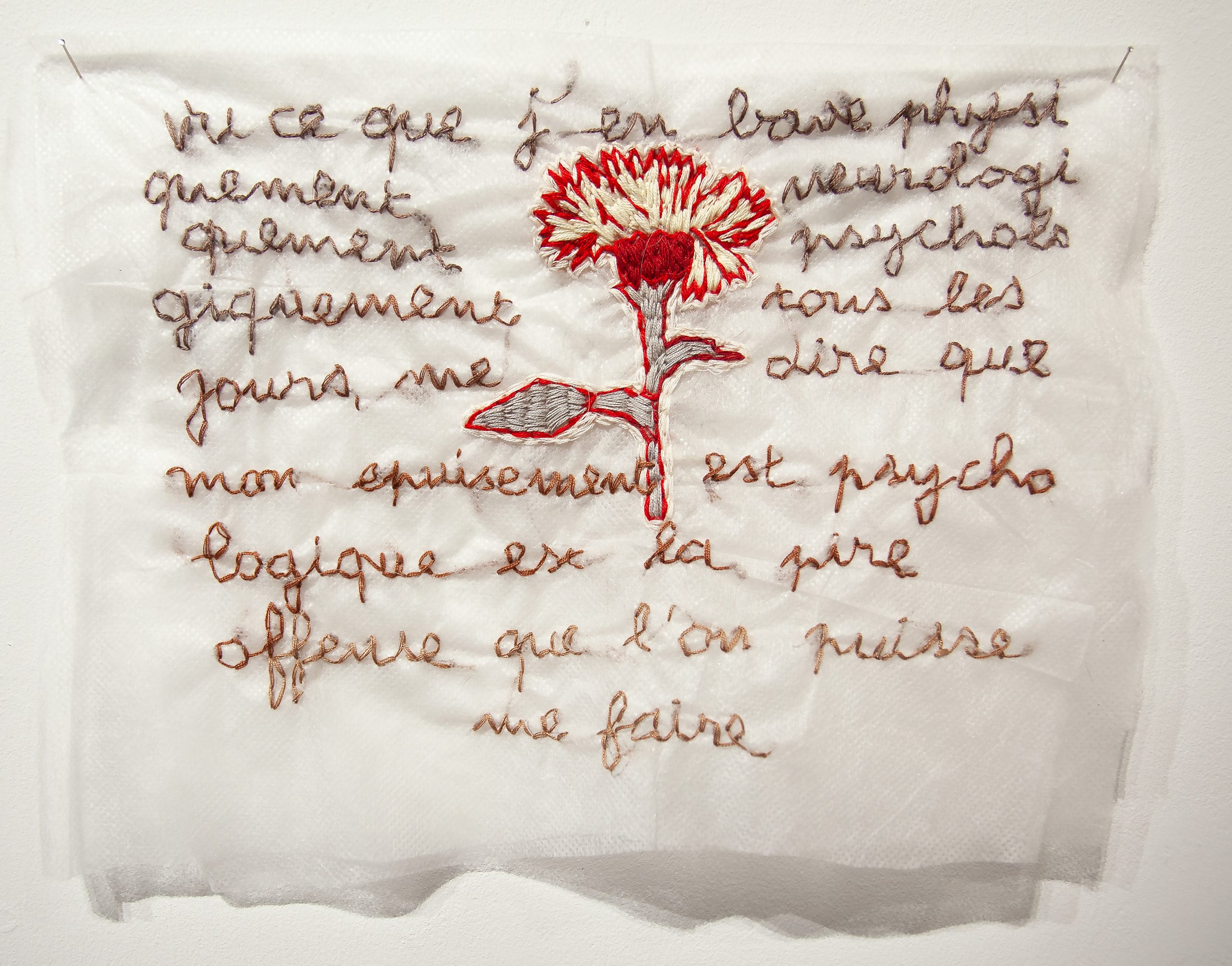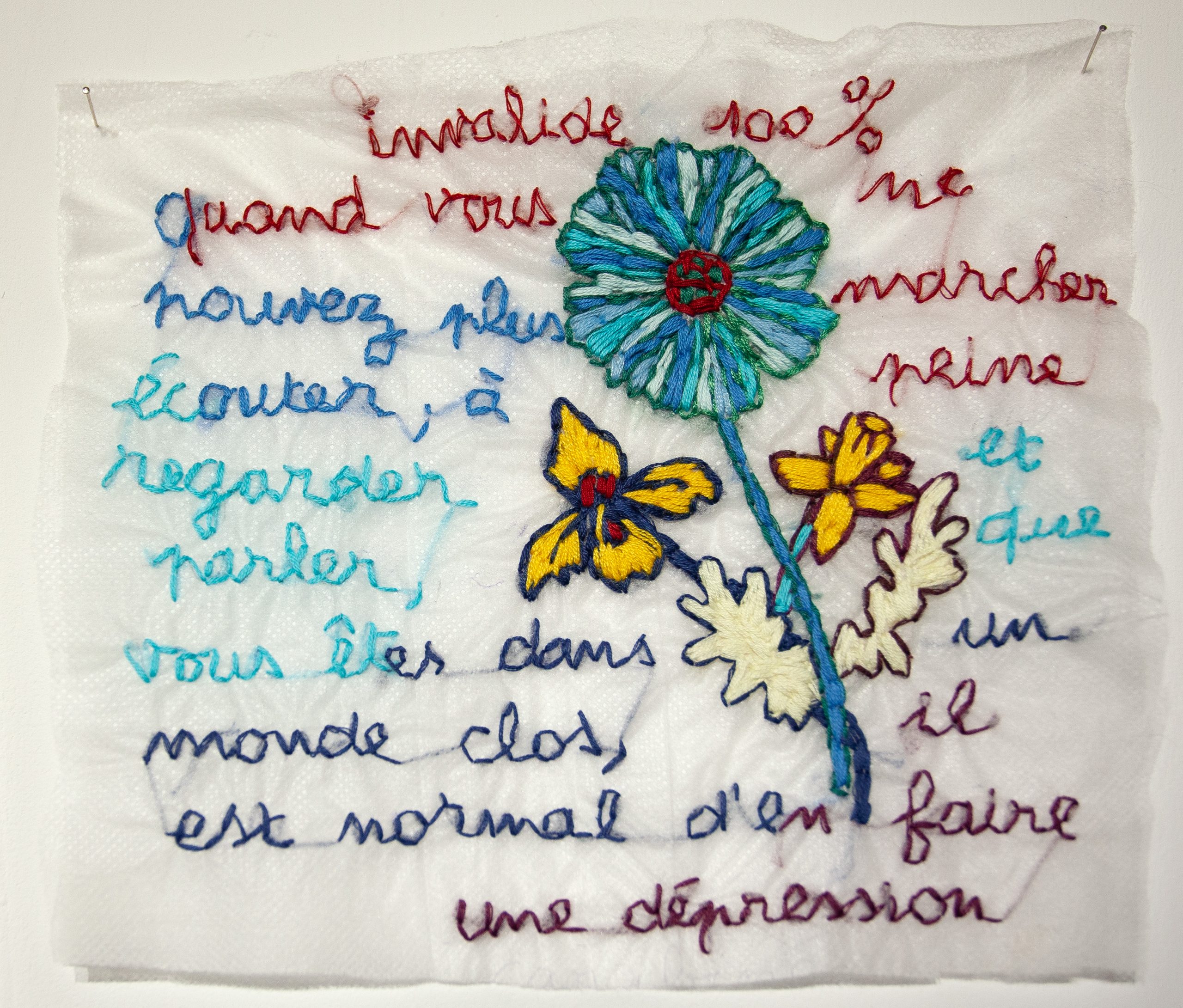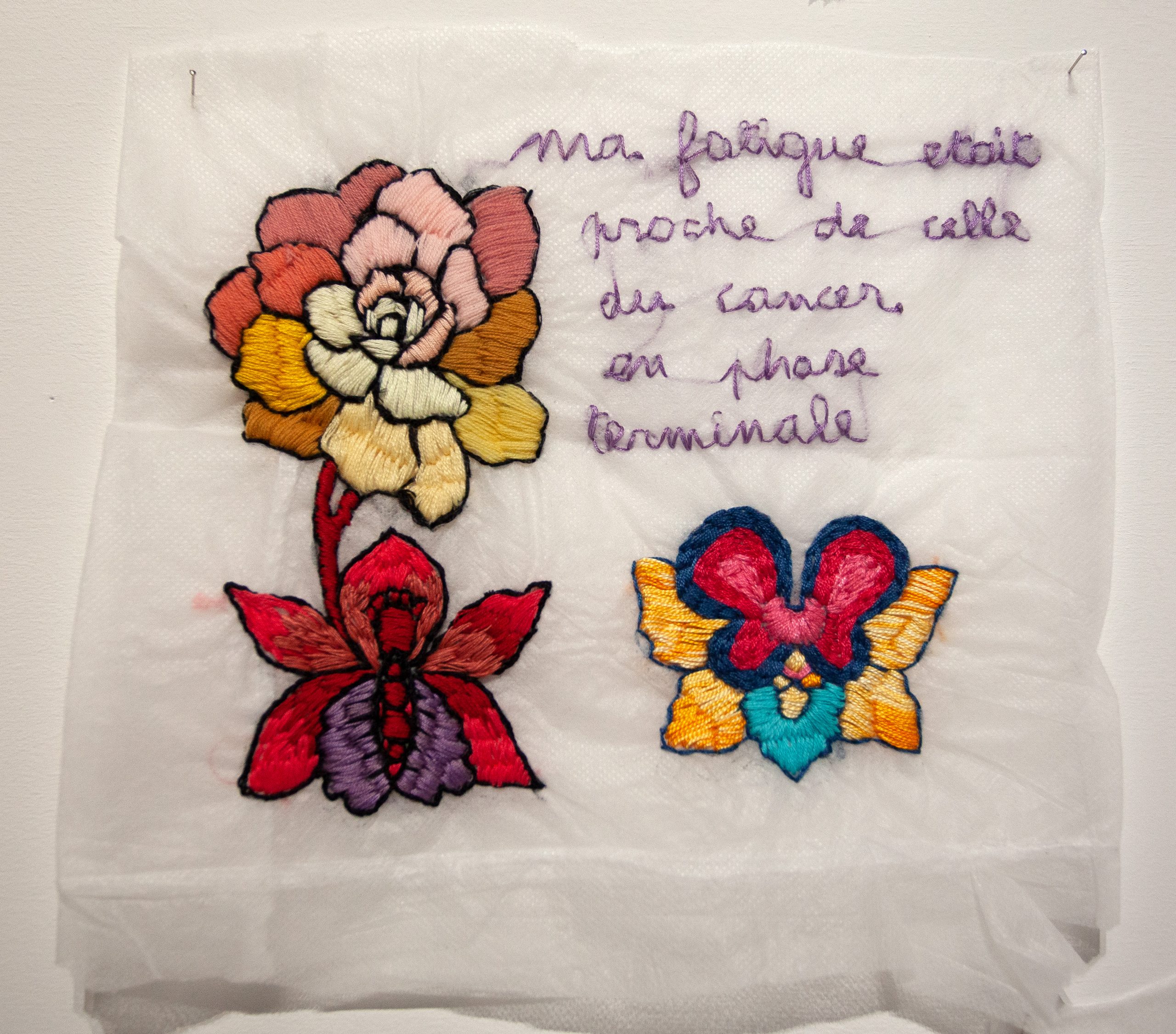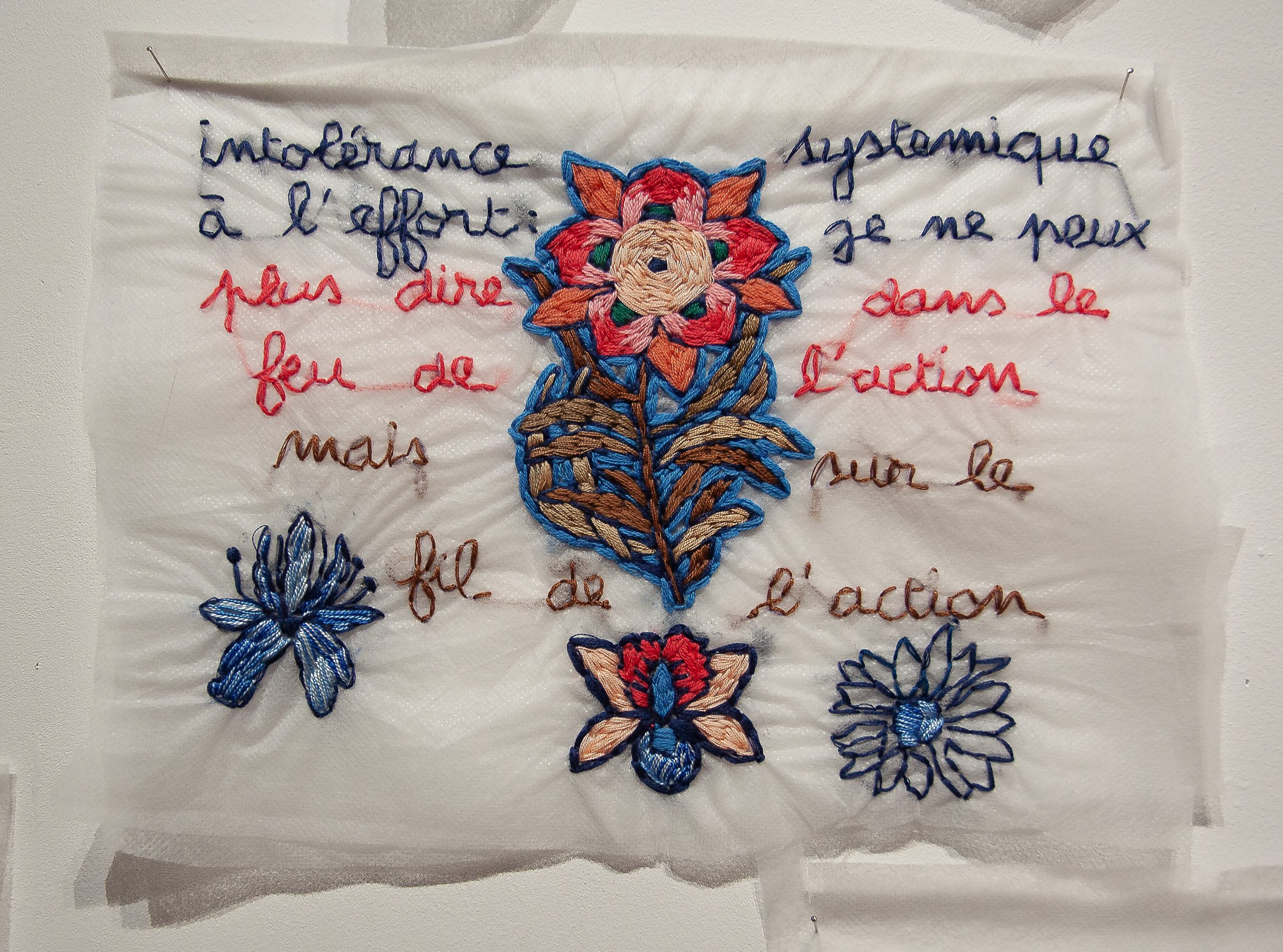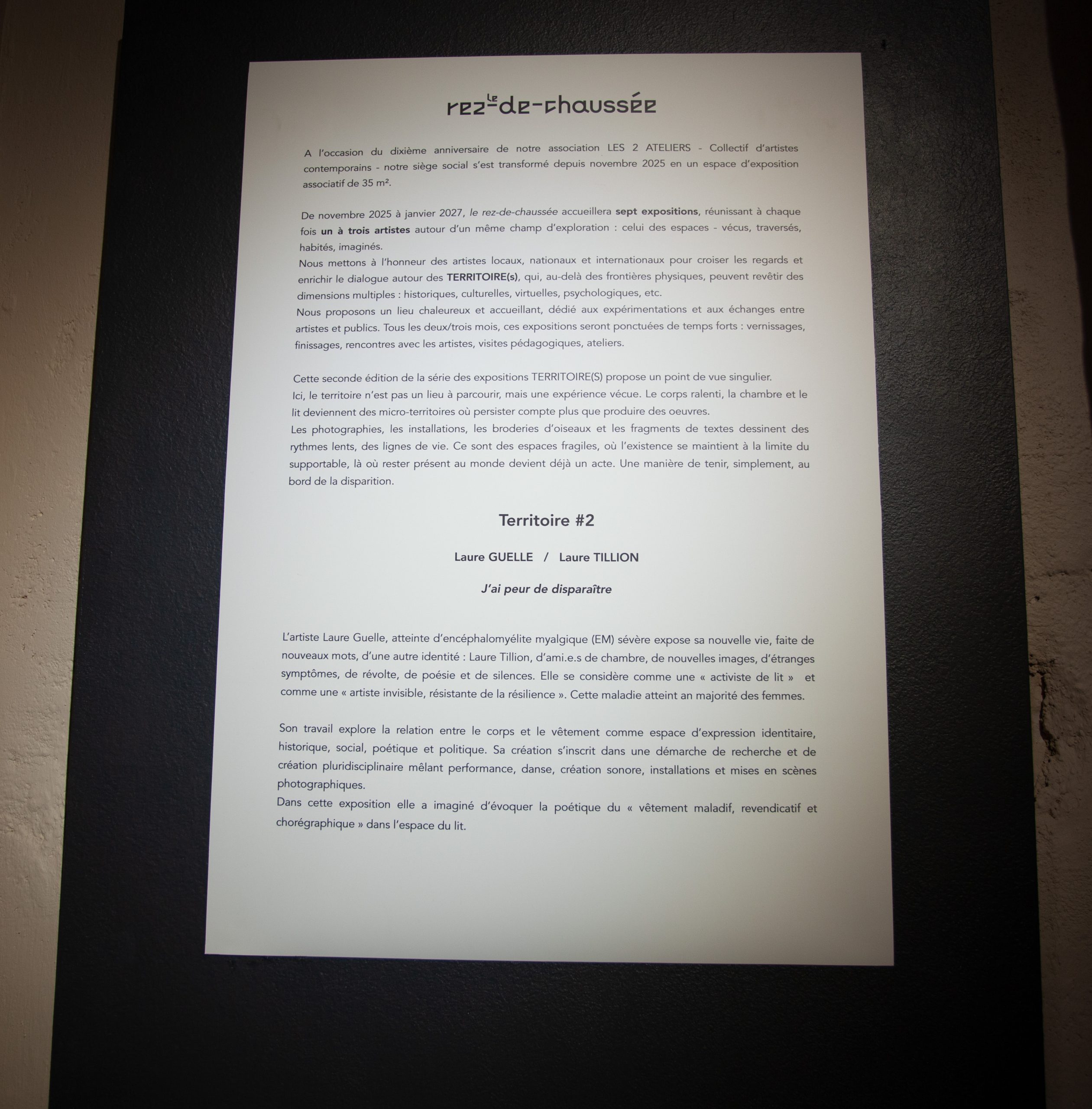 L’artiste Laure Guelle, atteinte d’EM (Encéphalomyélite Myalgique) sévère expose sa nouvelle vie, faite de nouveaux mots, d’une autre identité : Laure Tillion, d’ami.e.s de chambre, de nouvelles images, d’étranges symptômes, de révolte, de poésie et de silences. Elle se considère comme une « activiste de lit » et comme une « artiste invisible, résistante de la résilience ».