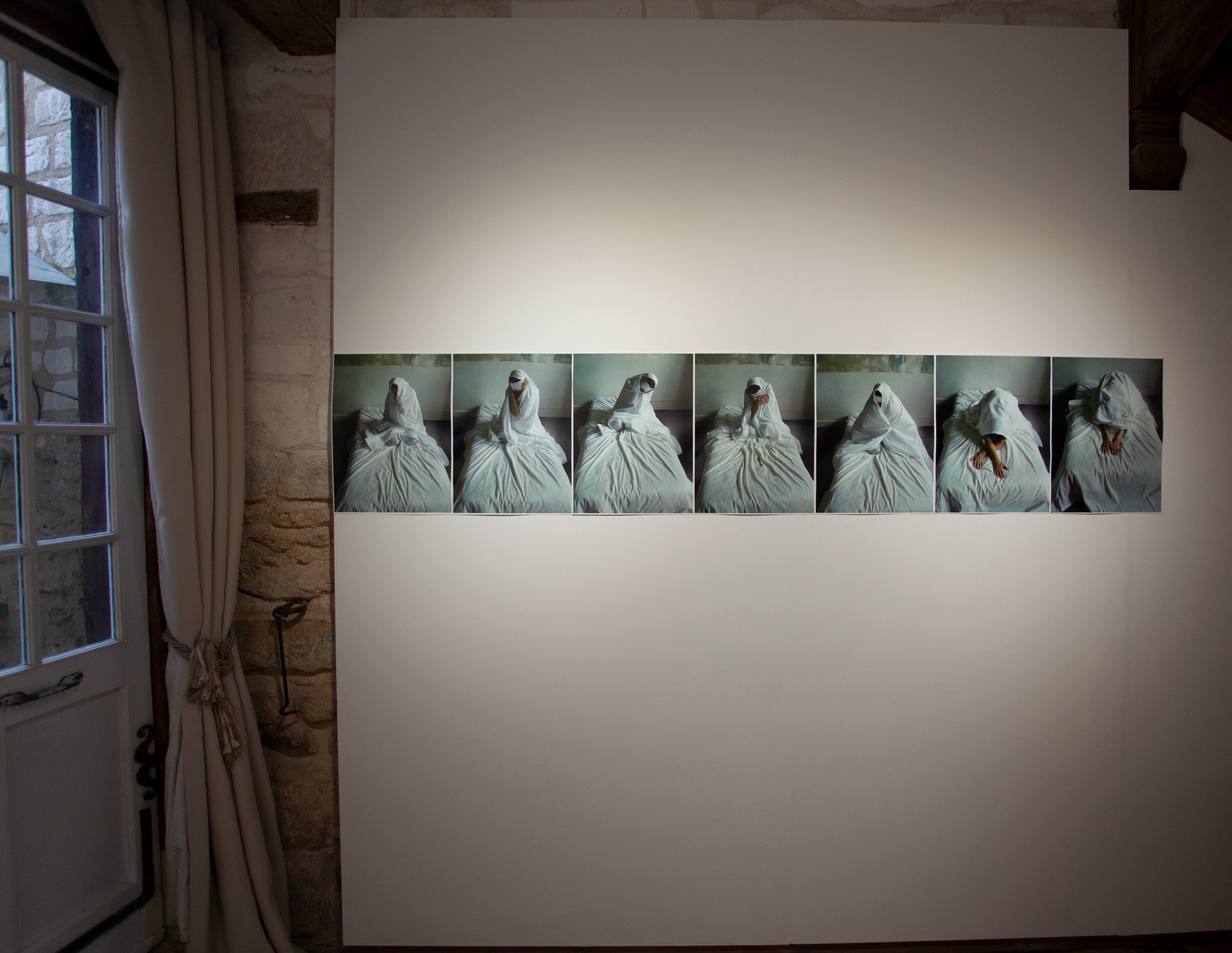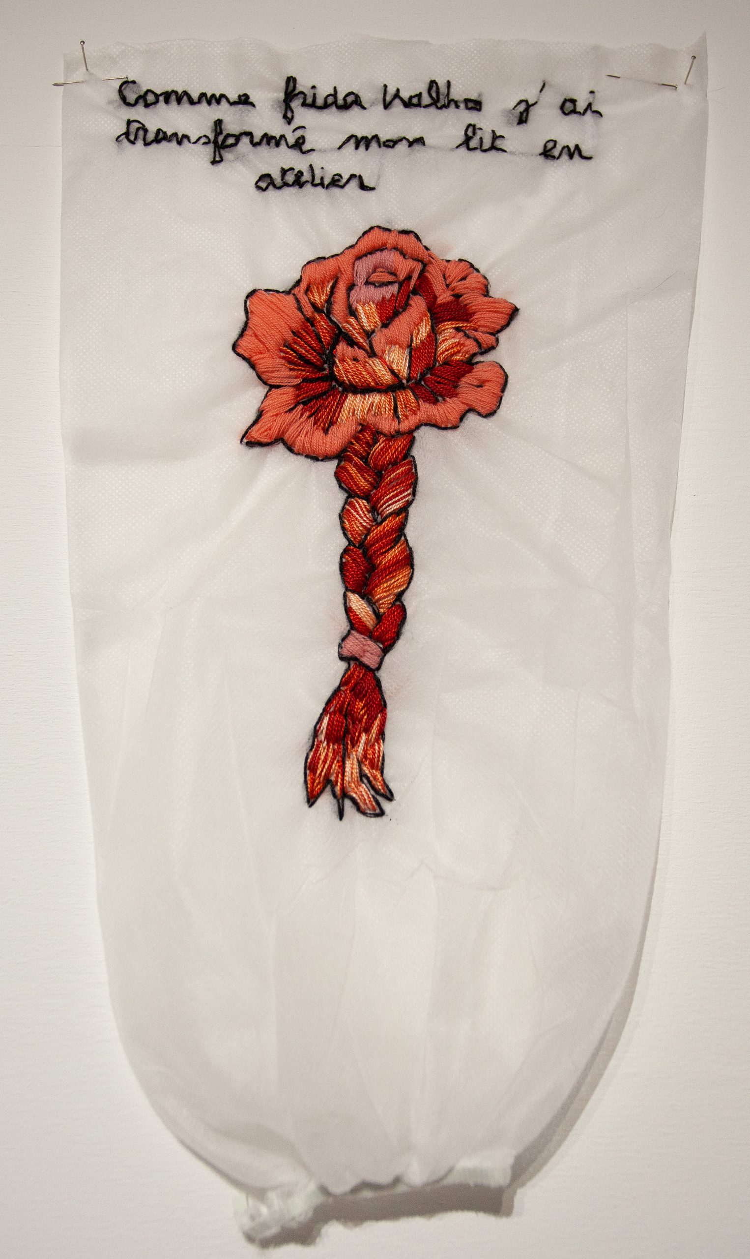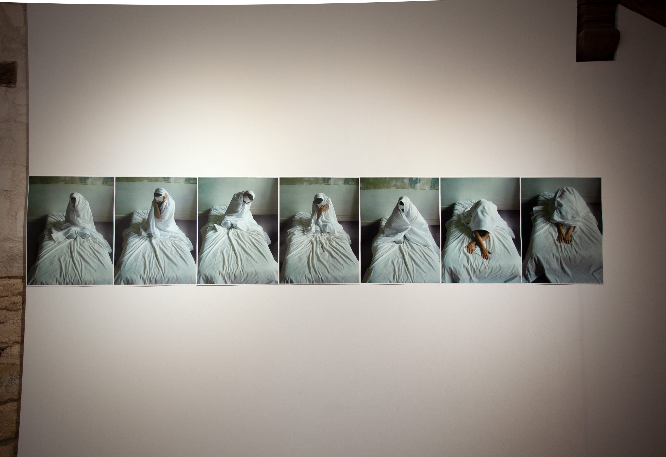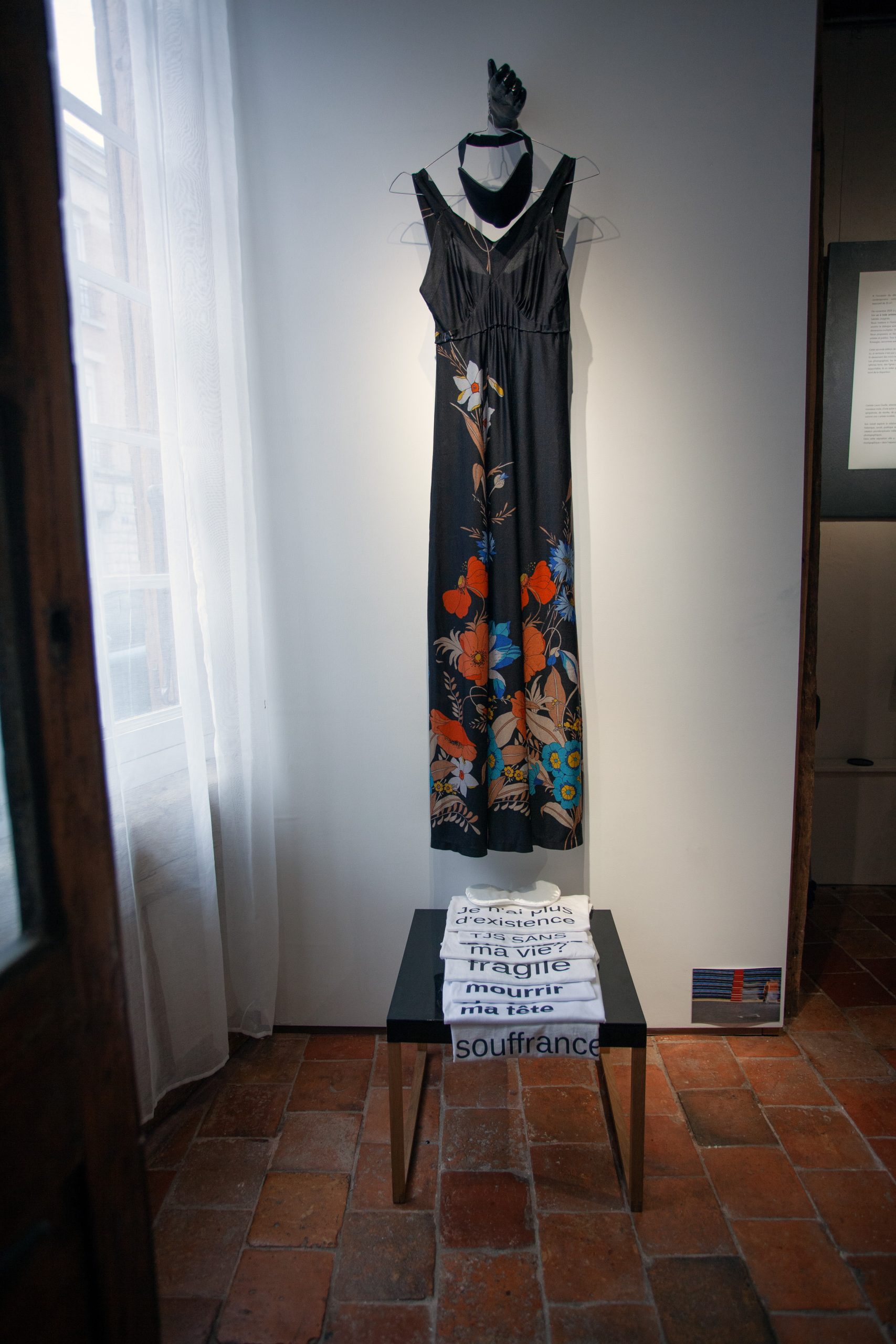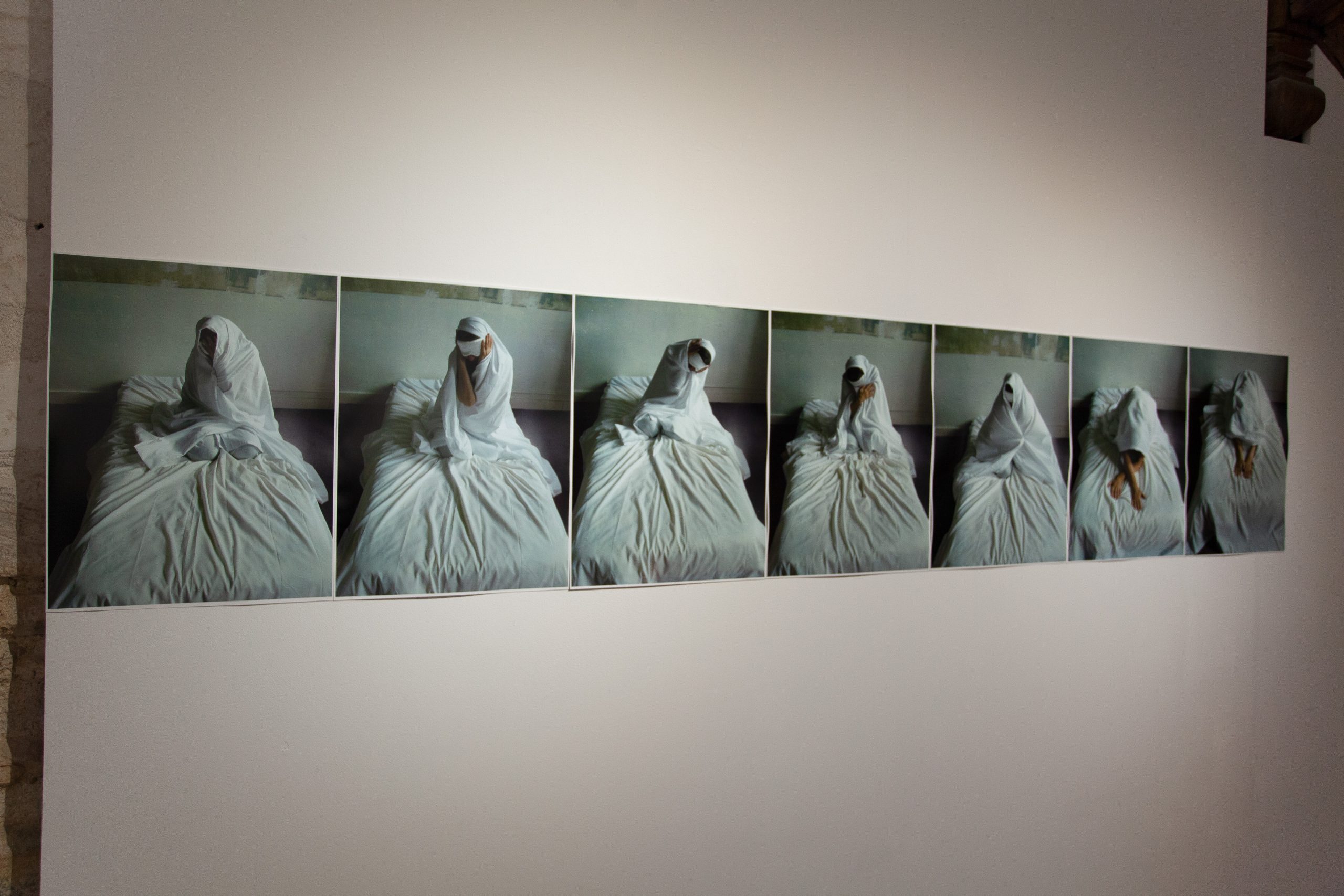 Dans cette exposition elle a imaginé d’évoquer la poétique du « vêtement maladif, revendicatif et chorégraphique » dans l’espace du lit.
