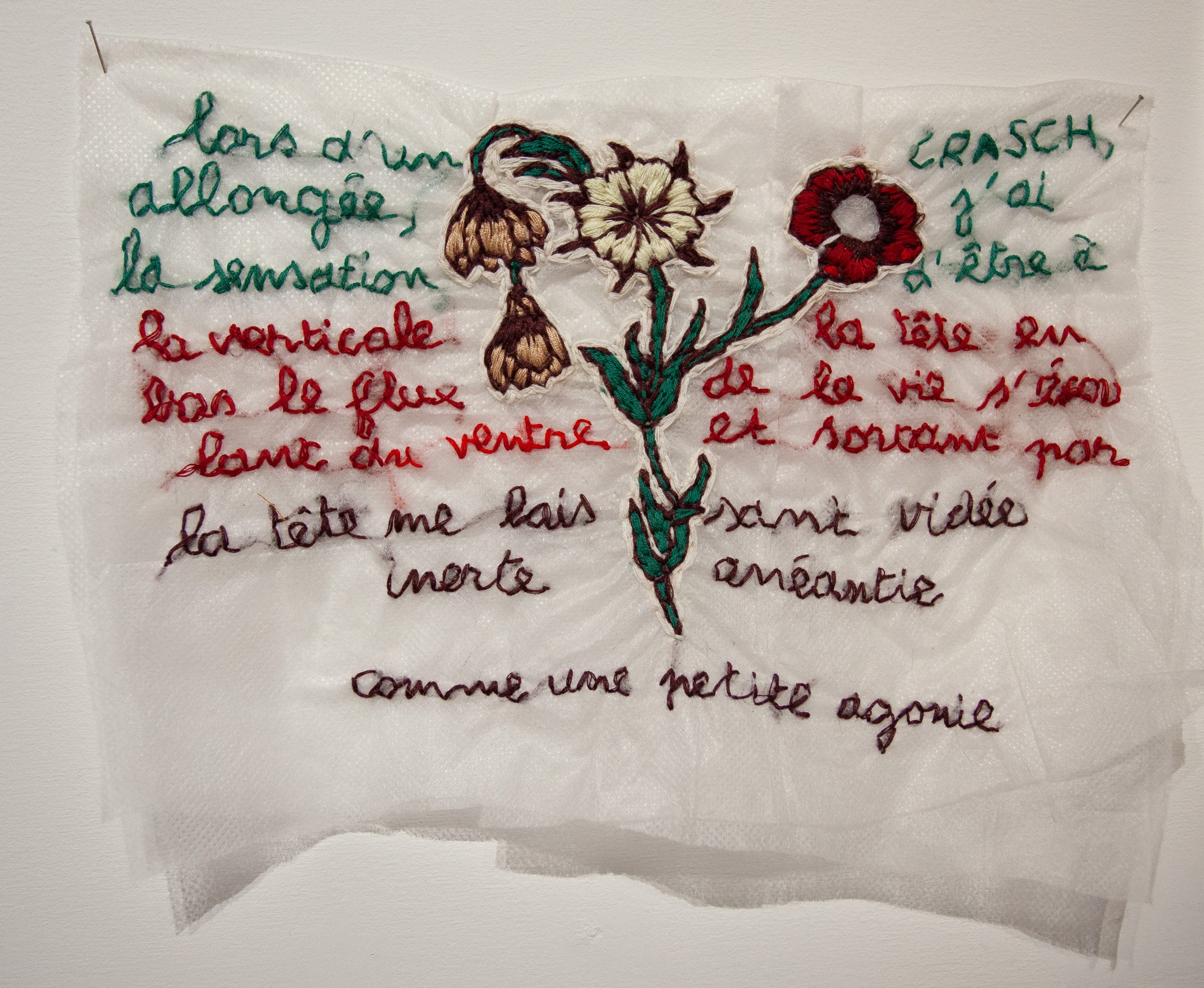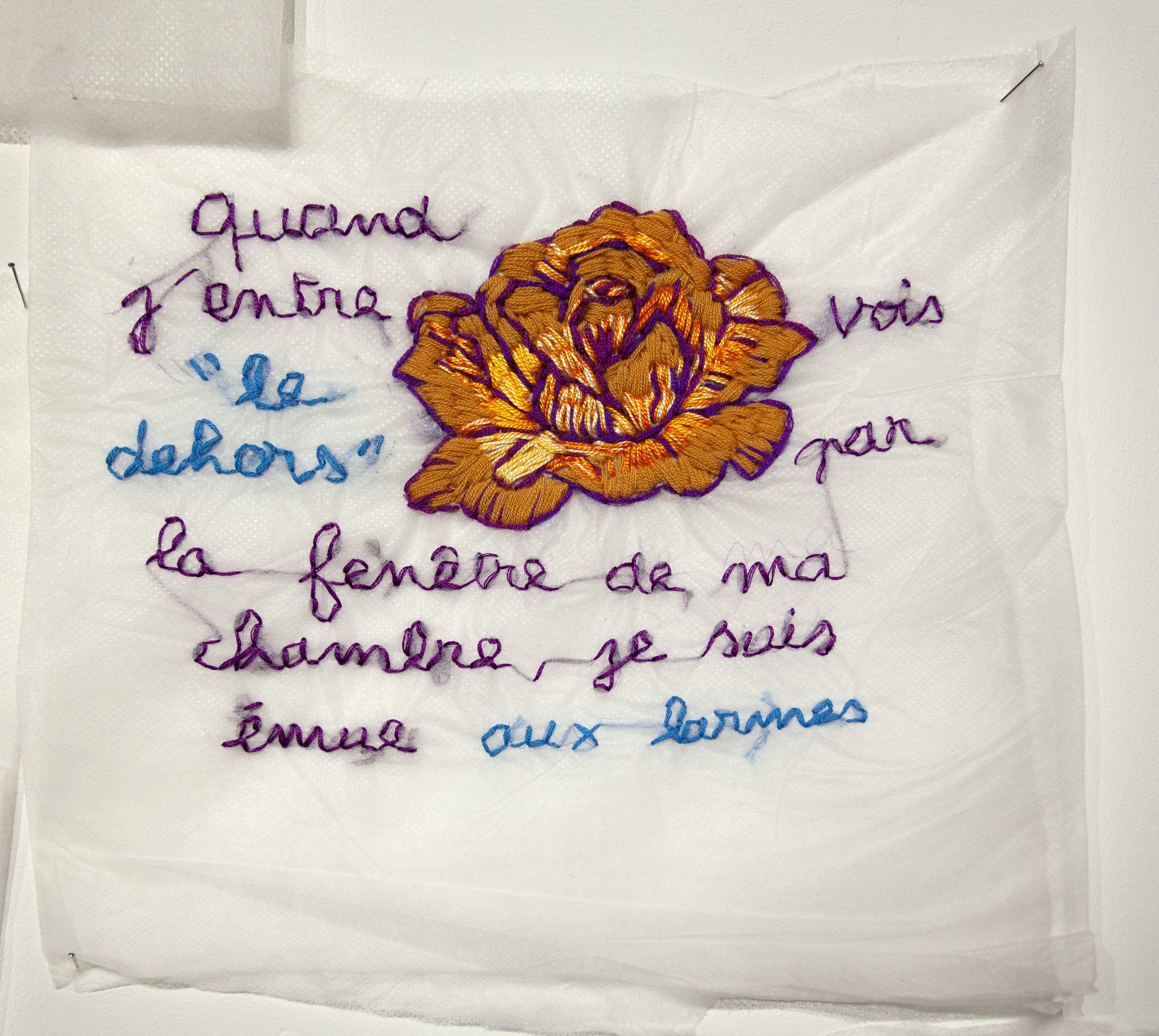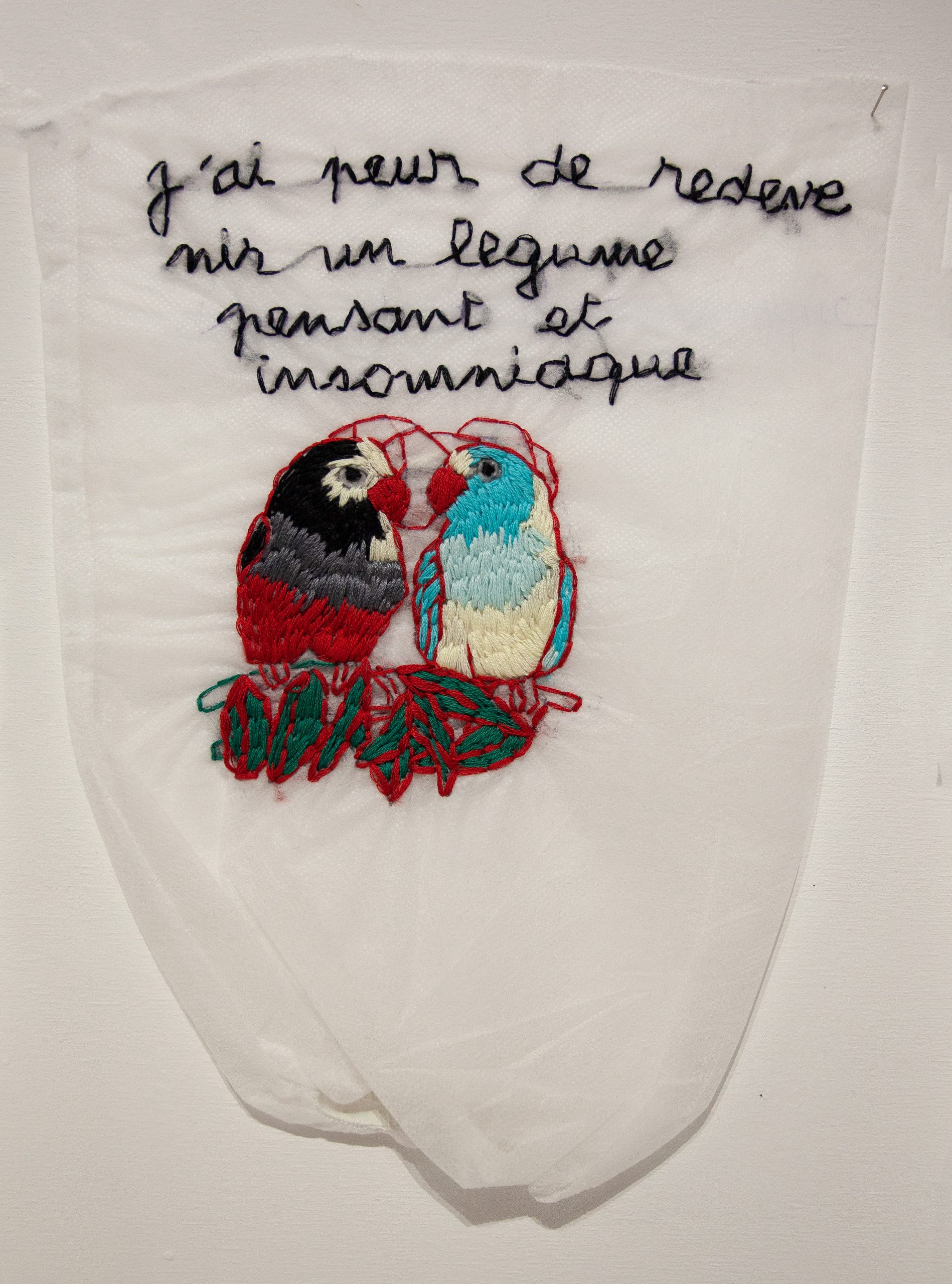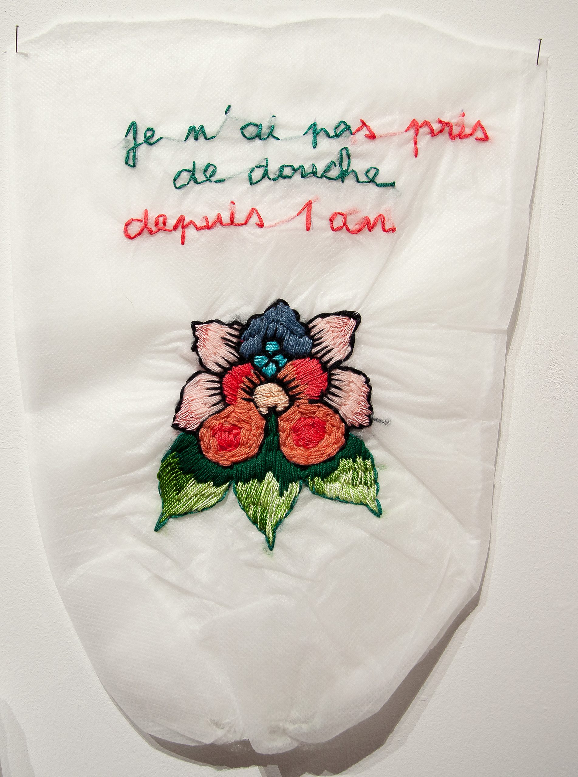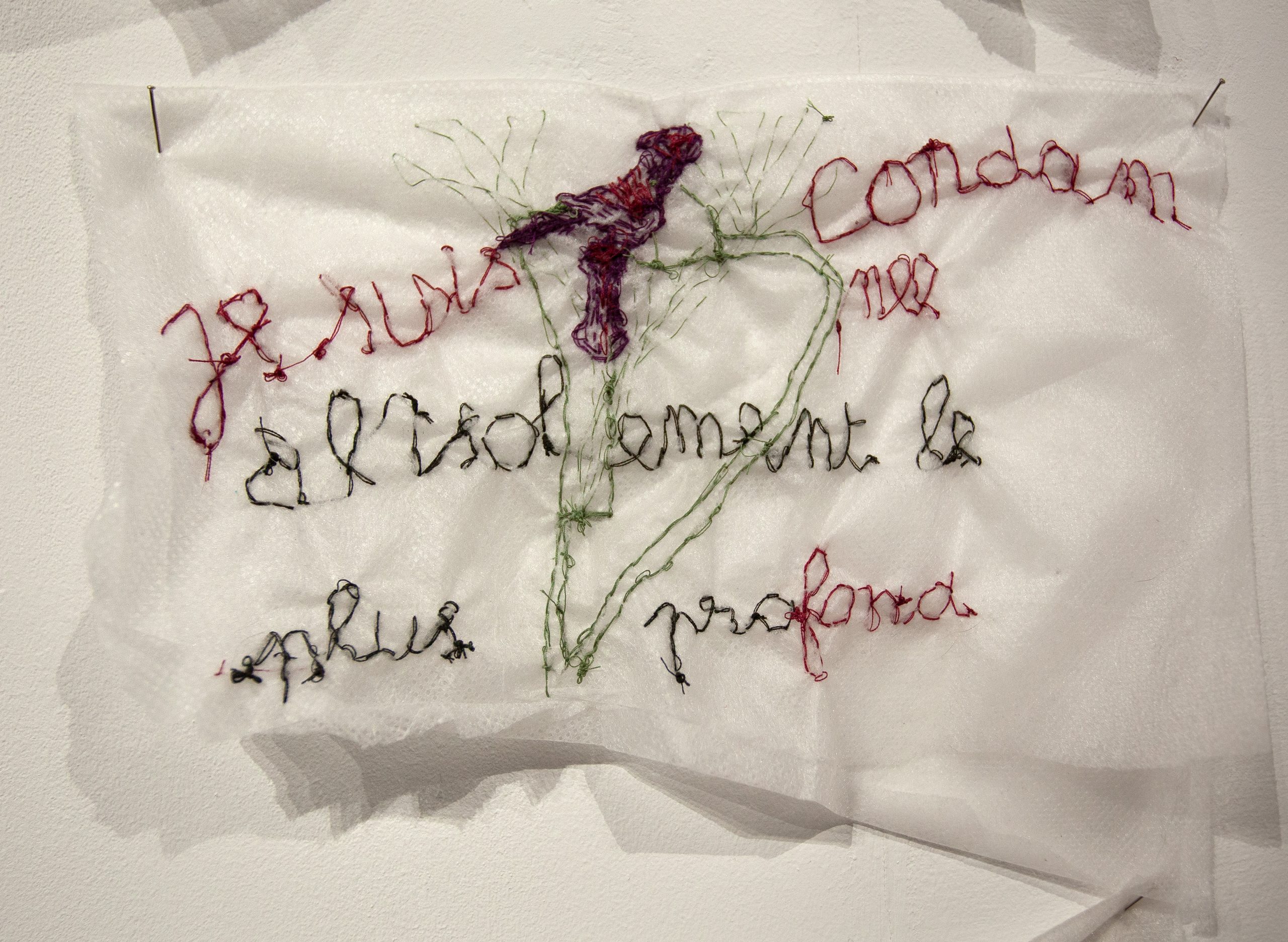 Dans cette exposition elle a imaginé d’évoquer la poétique du « vêtement maladif, revendicatif et chorégraphique » dans l’espace du lit.