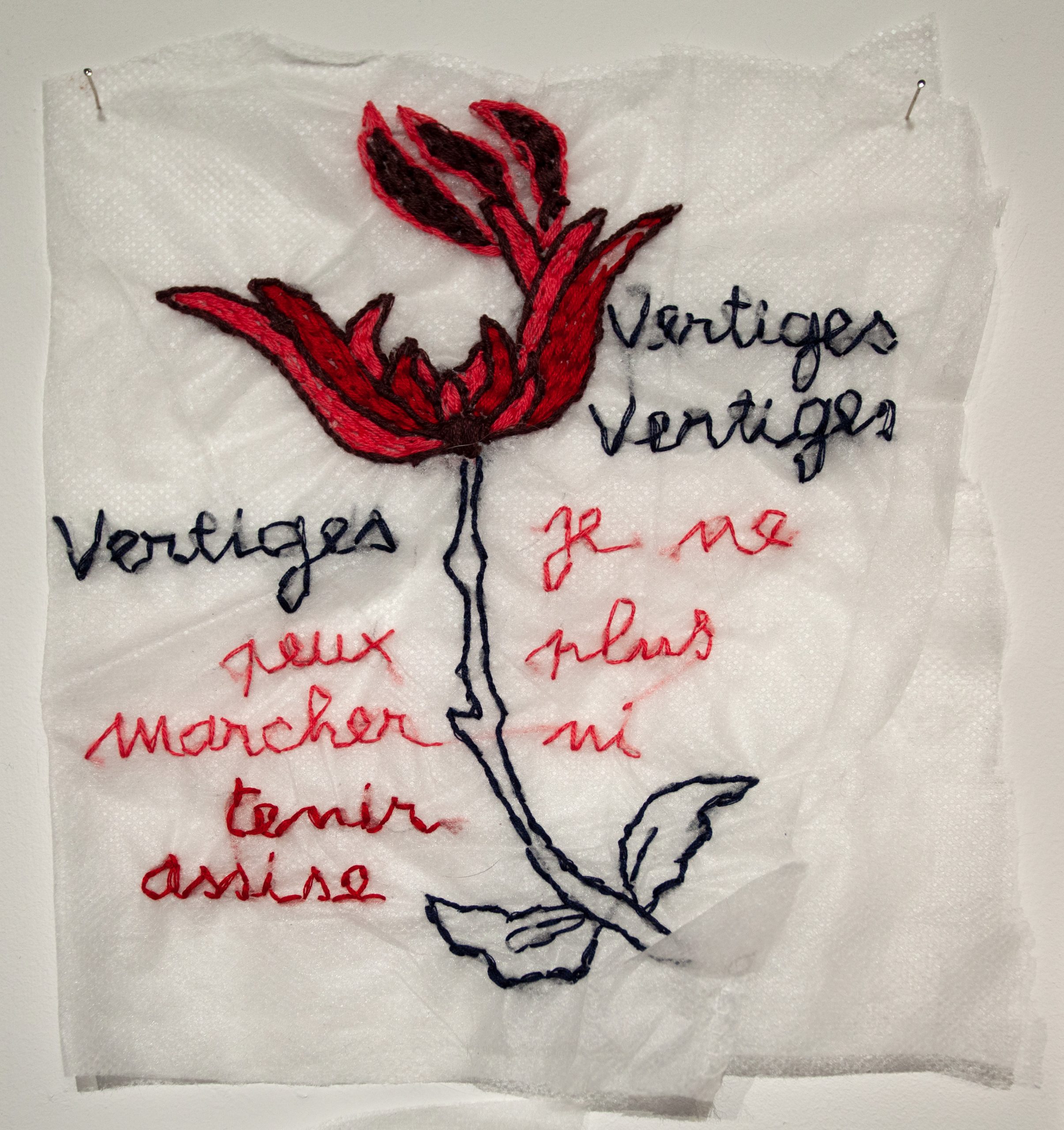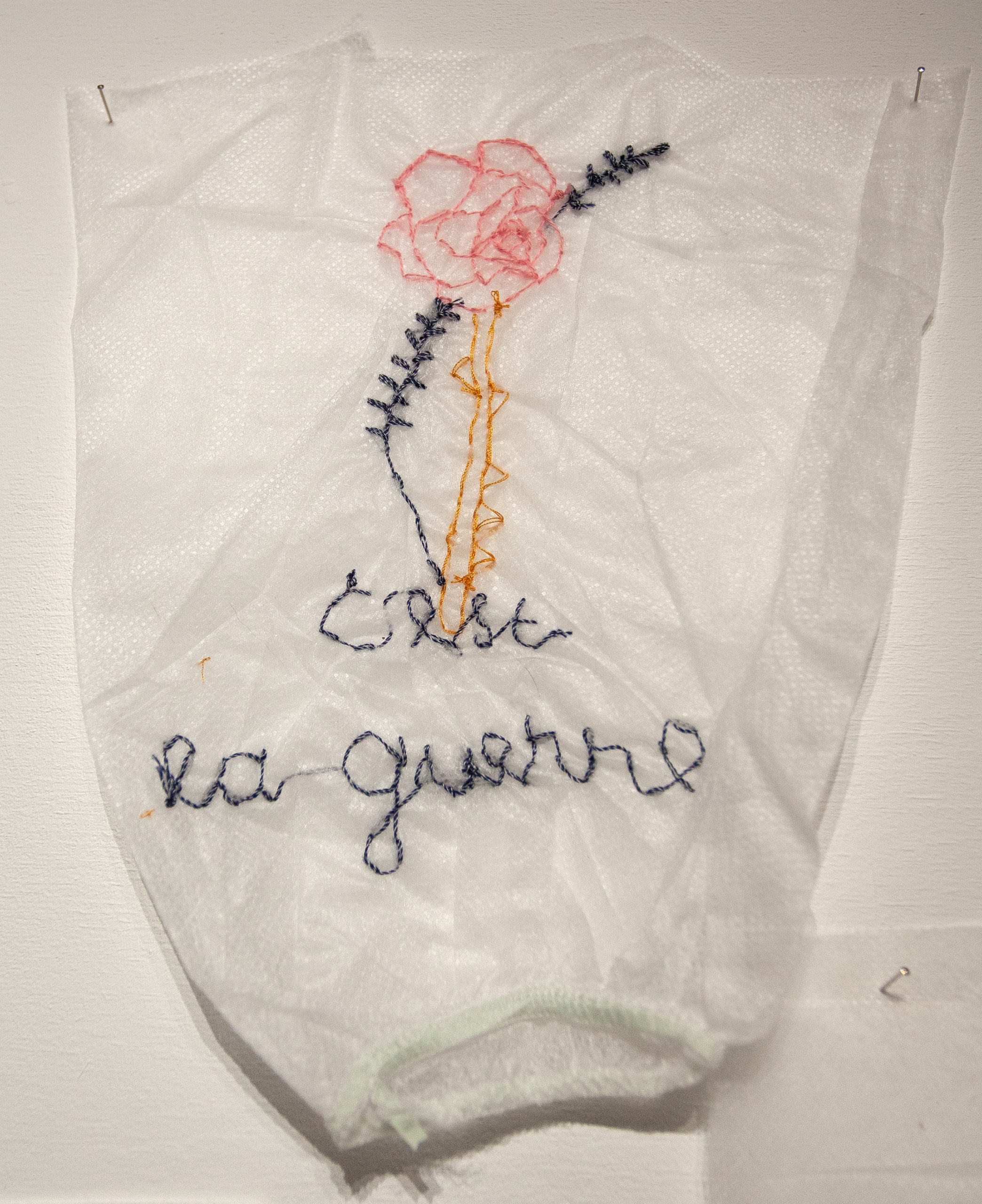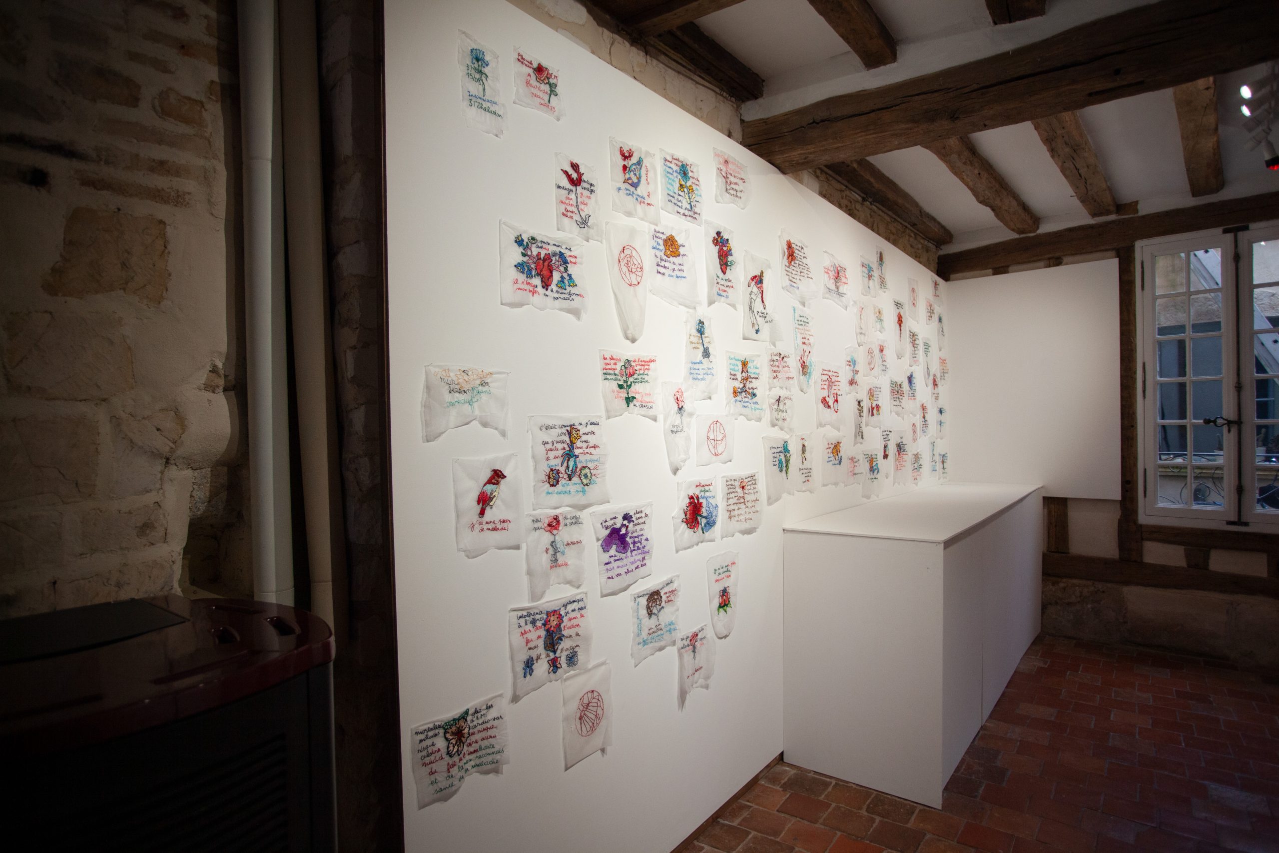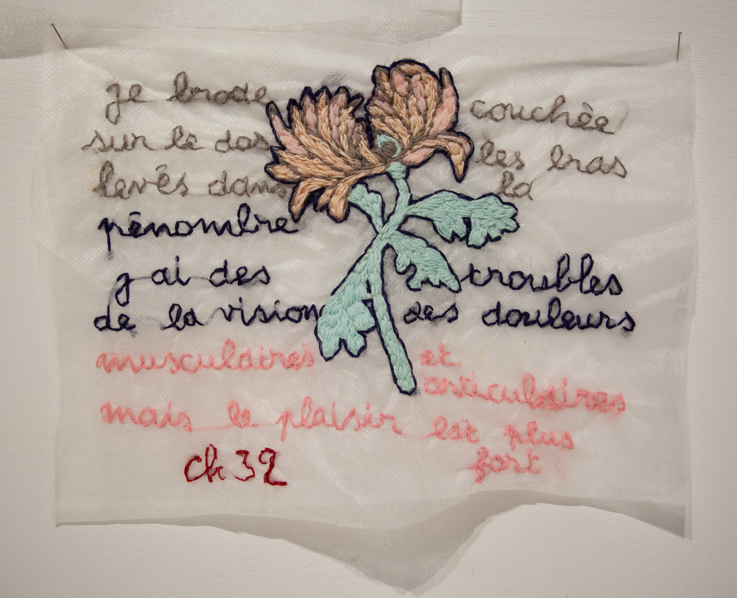 Dans cette exposition elle a imaginé d’évoquer la poétique du « vêtement maladif, revendicatif et chorégraphique » dans l’espace du lit.