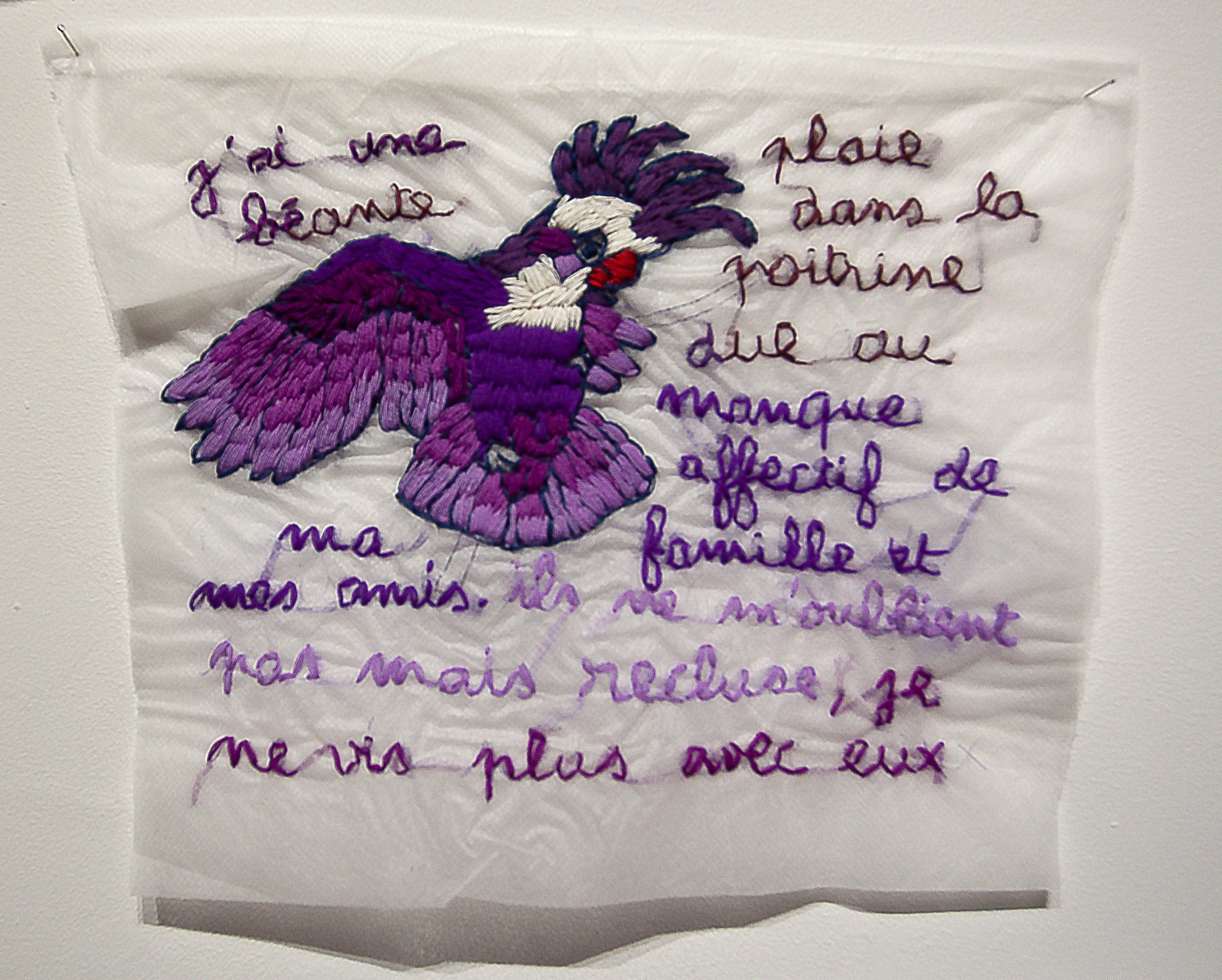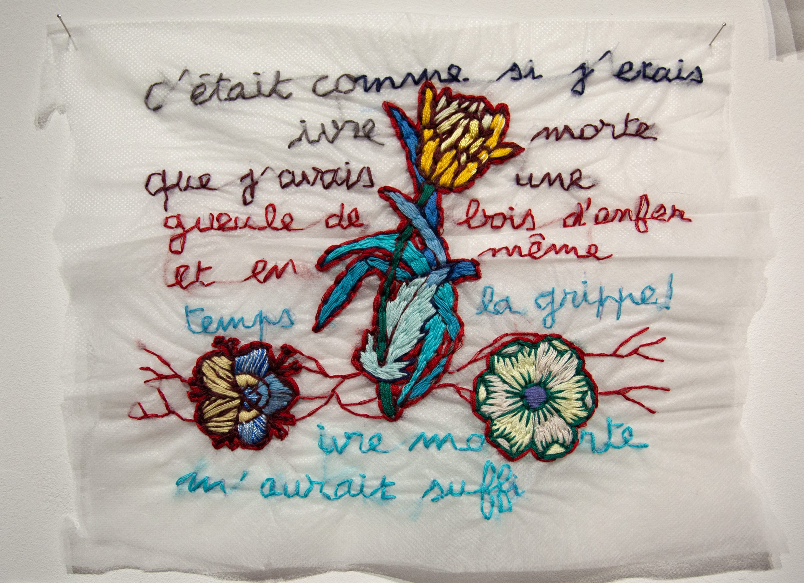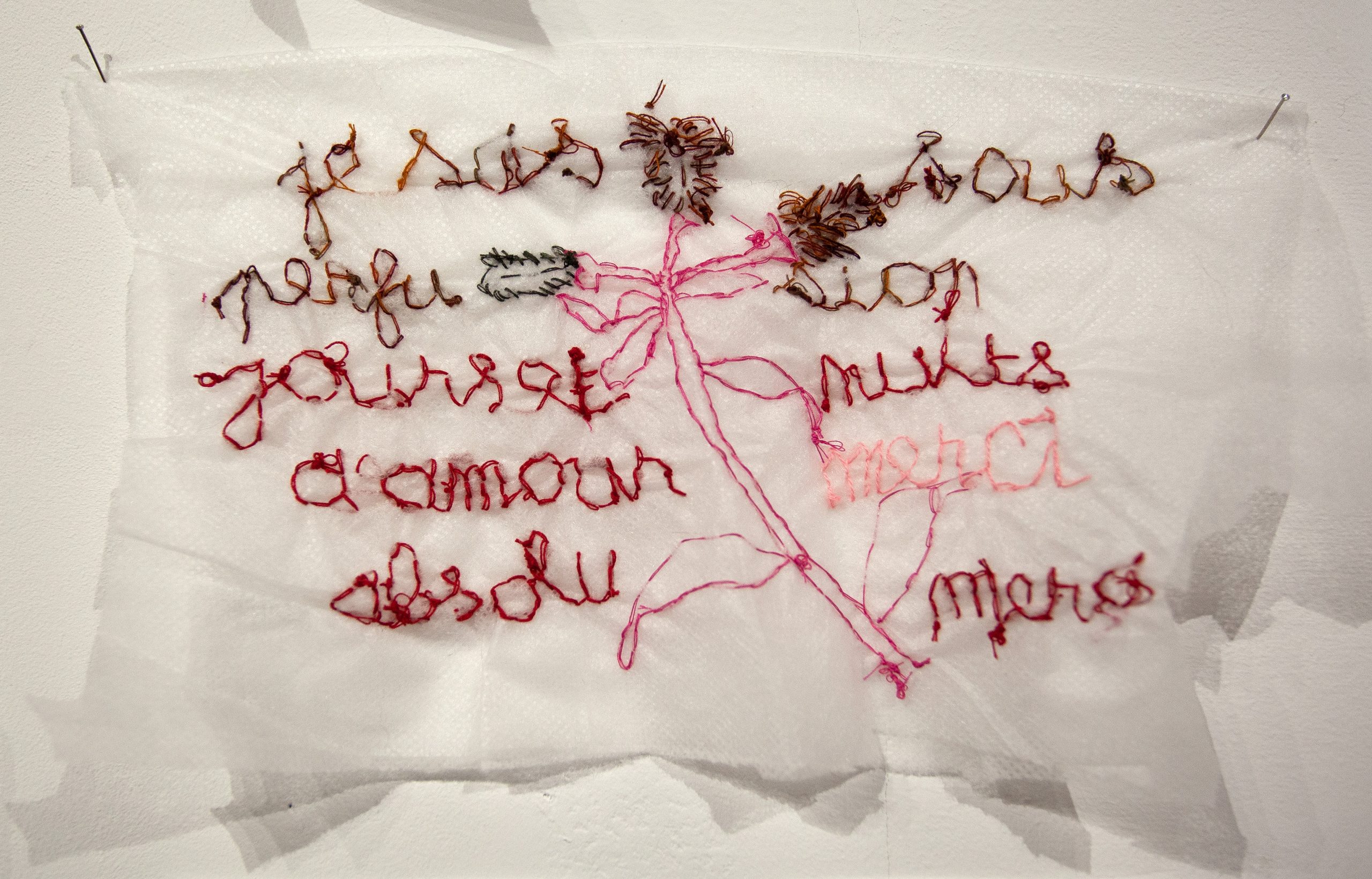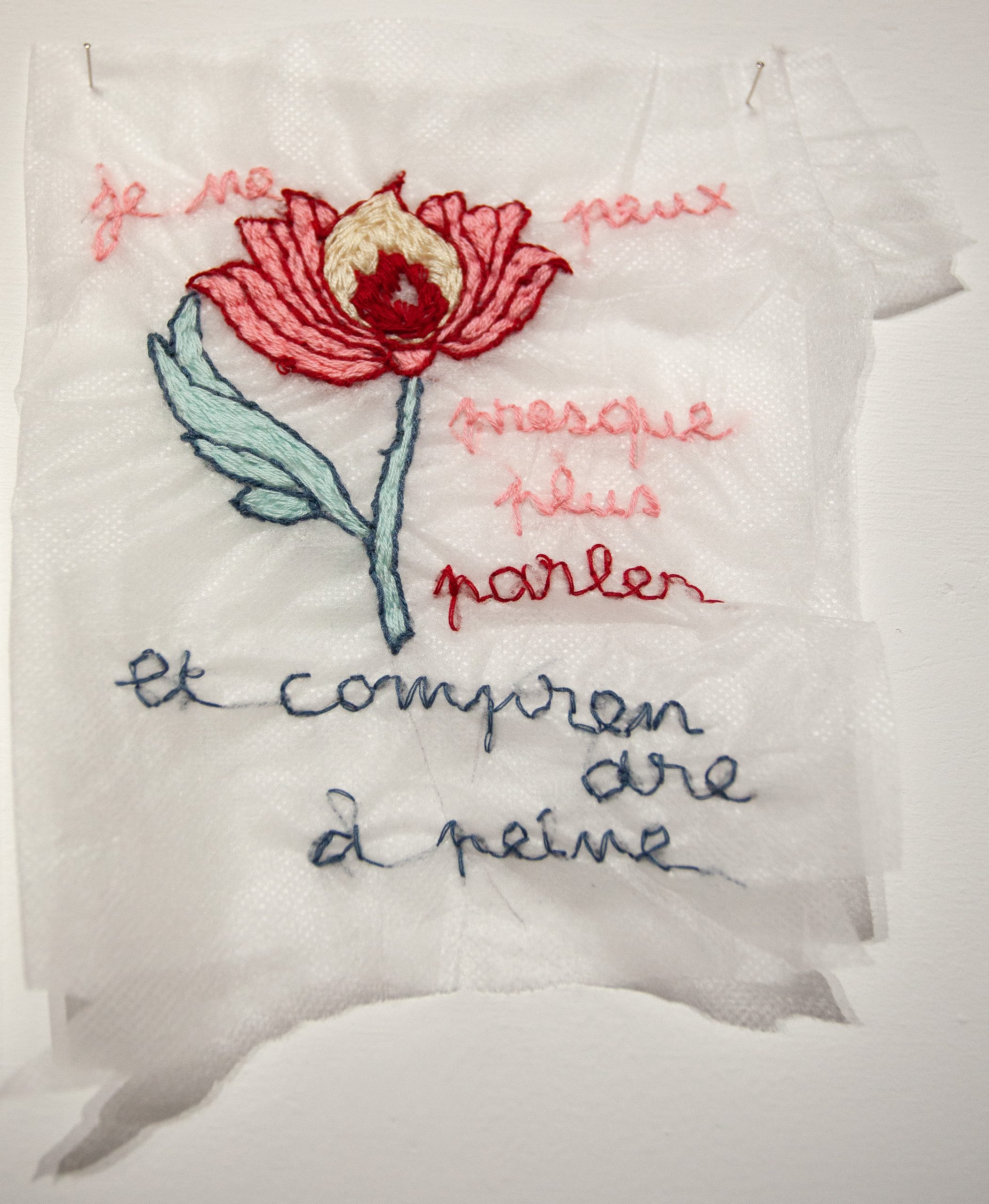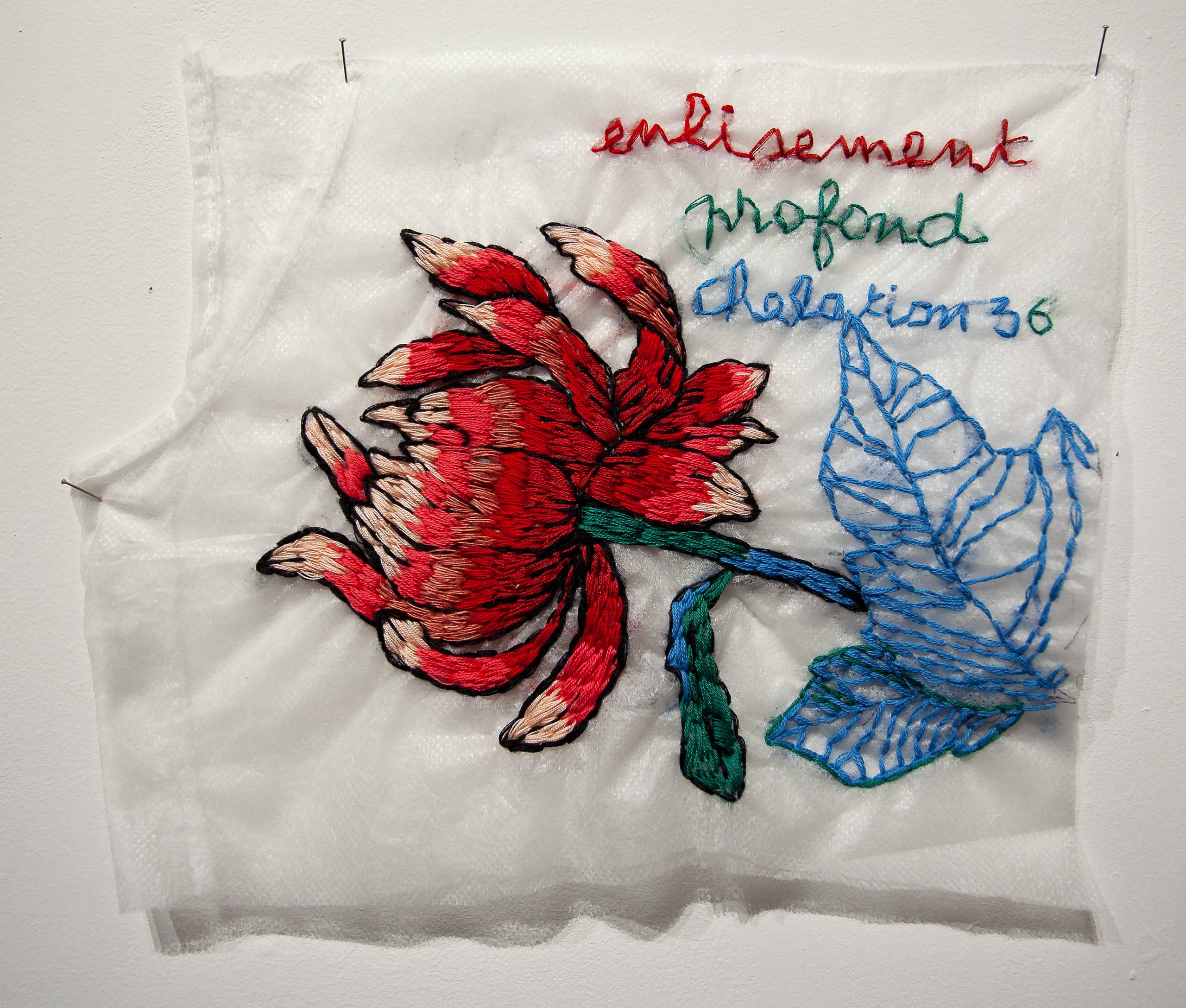 Dans cette exposition elle a imaginé d’évoquer la poétique du « vêtement maladif, revendicatif et chorégraphique » dans l’espace du lit.