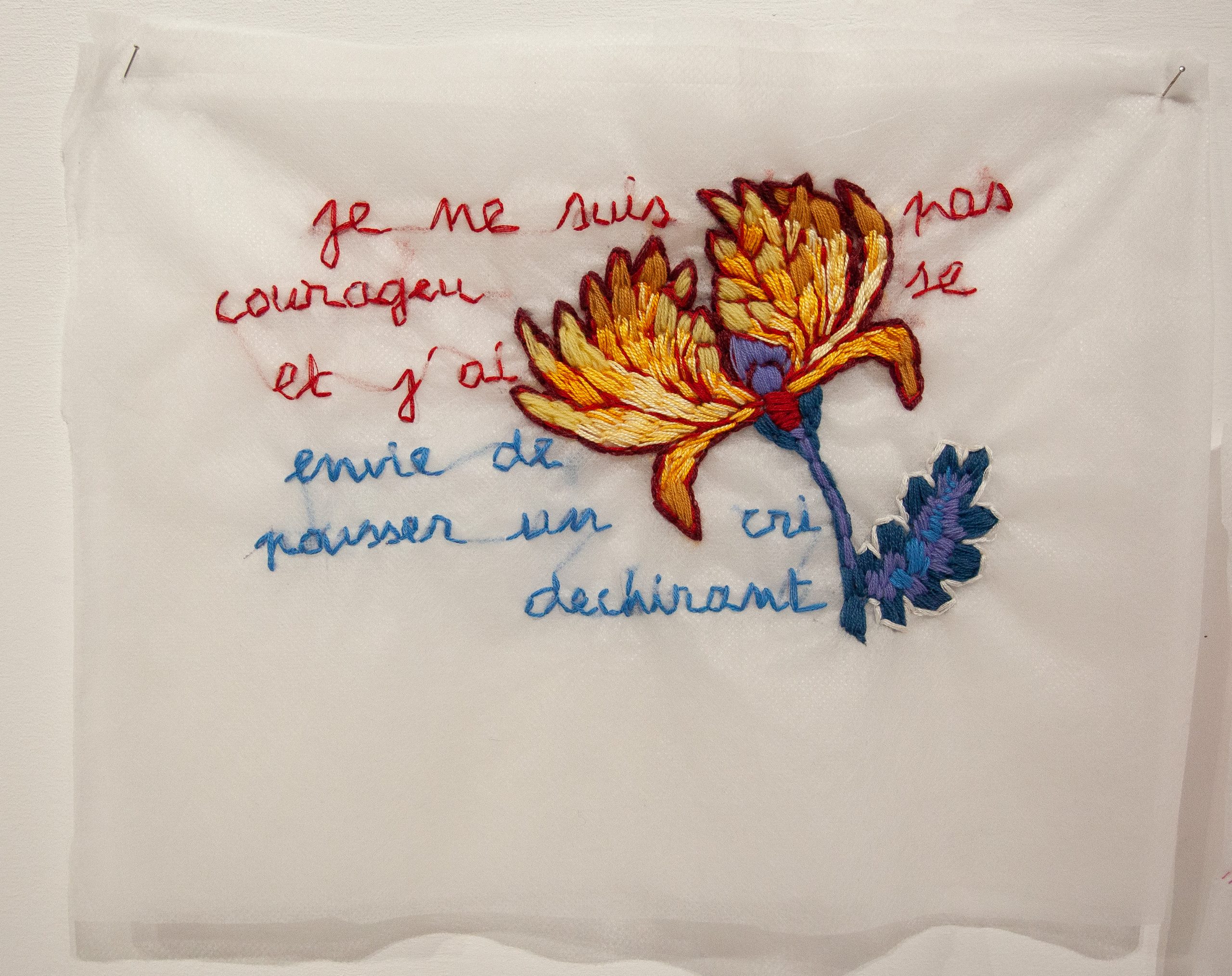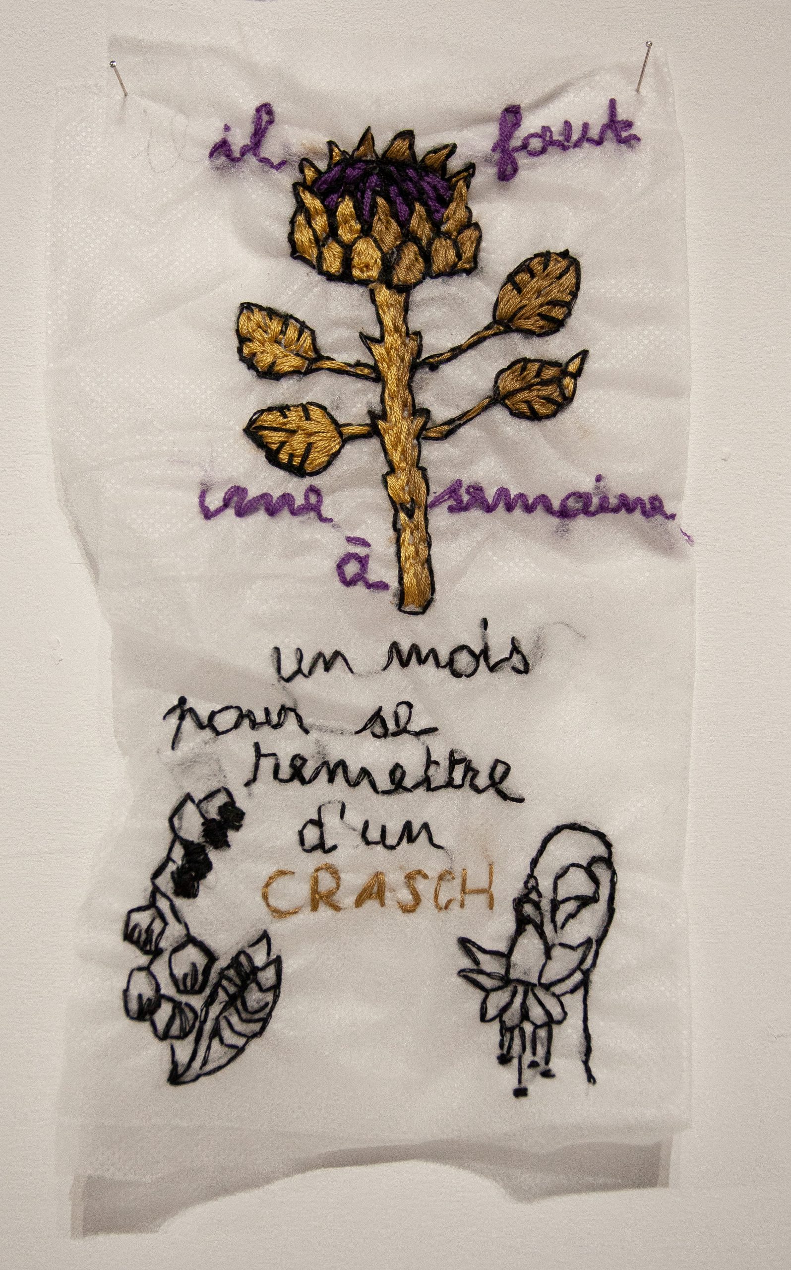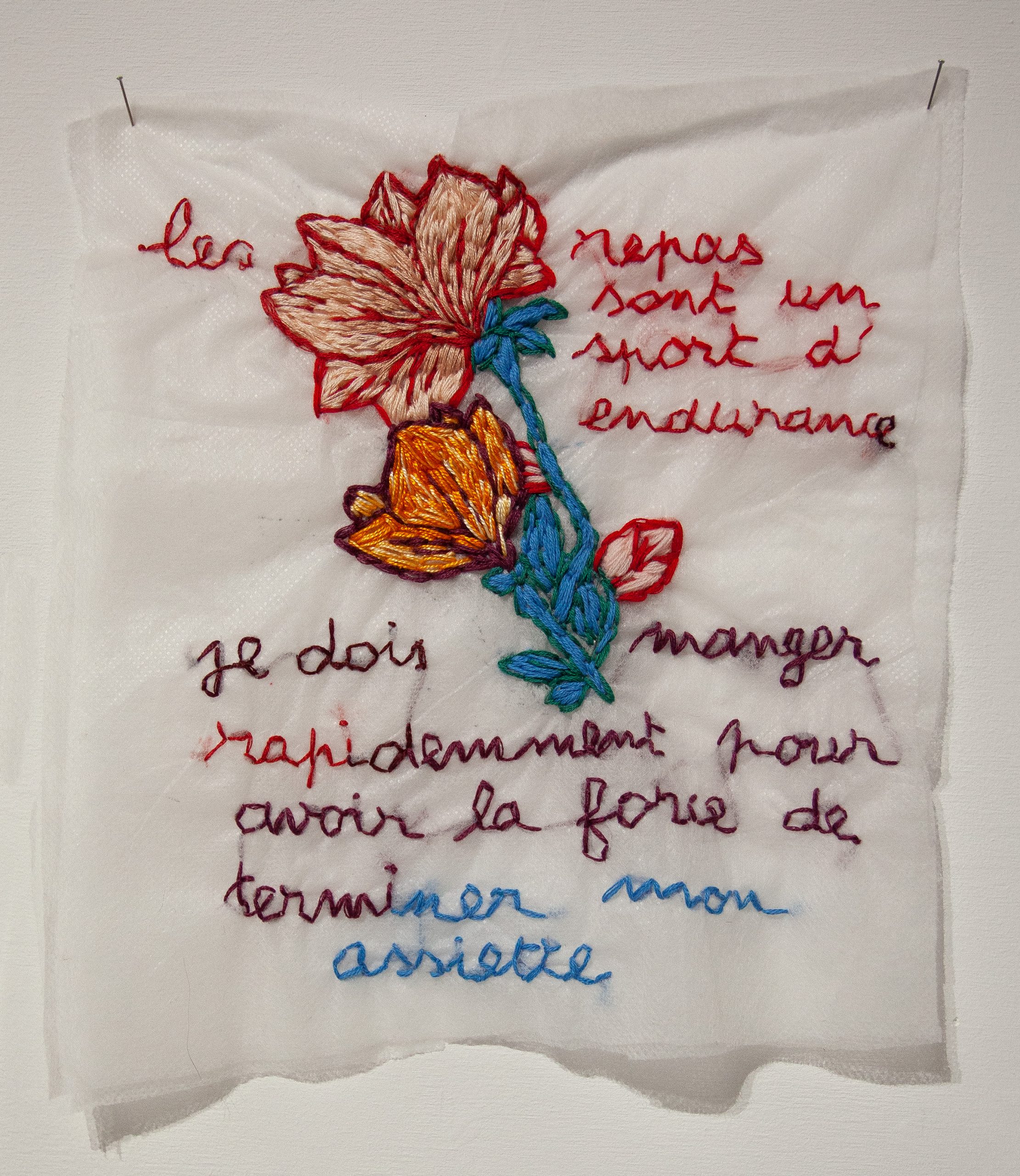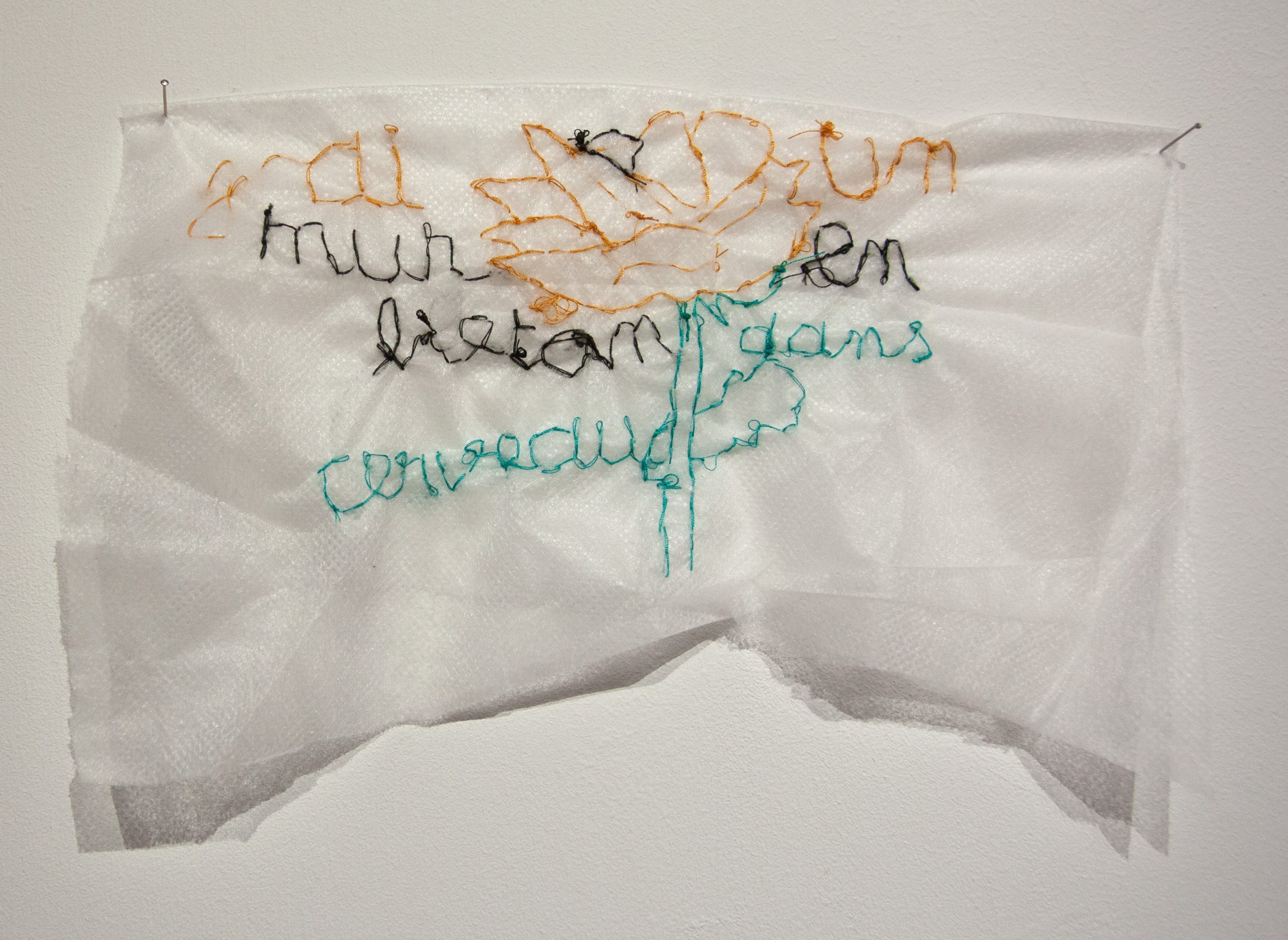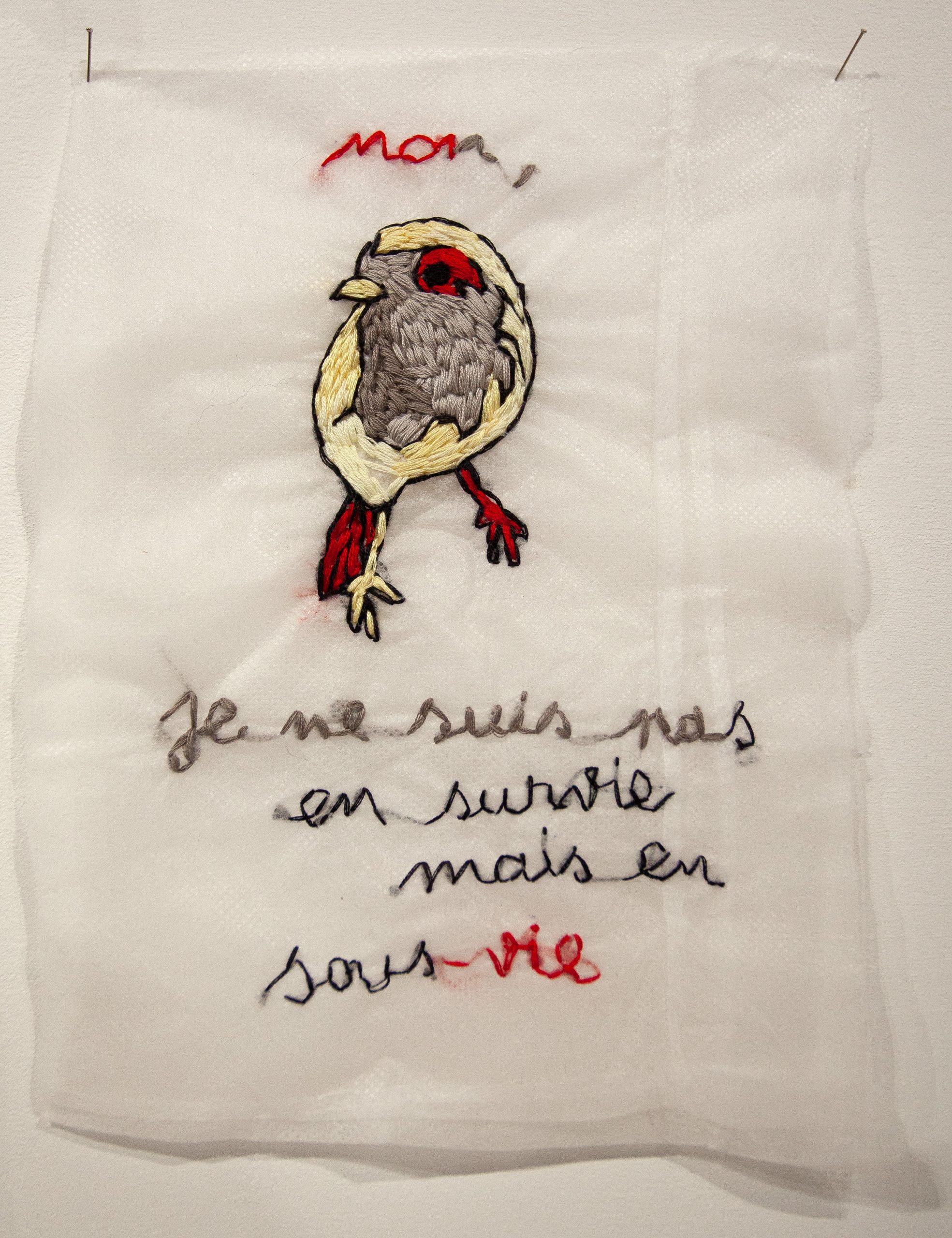 Dans cette exposition elle a imaginé d’évoquer la poétique du « vêtement maladif, revendicatif et chorégraphique » dans l’espace du lit.