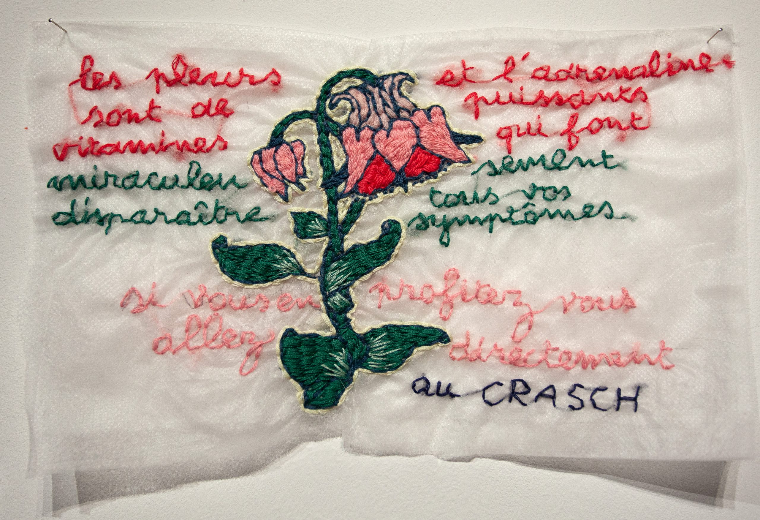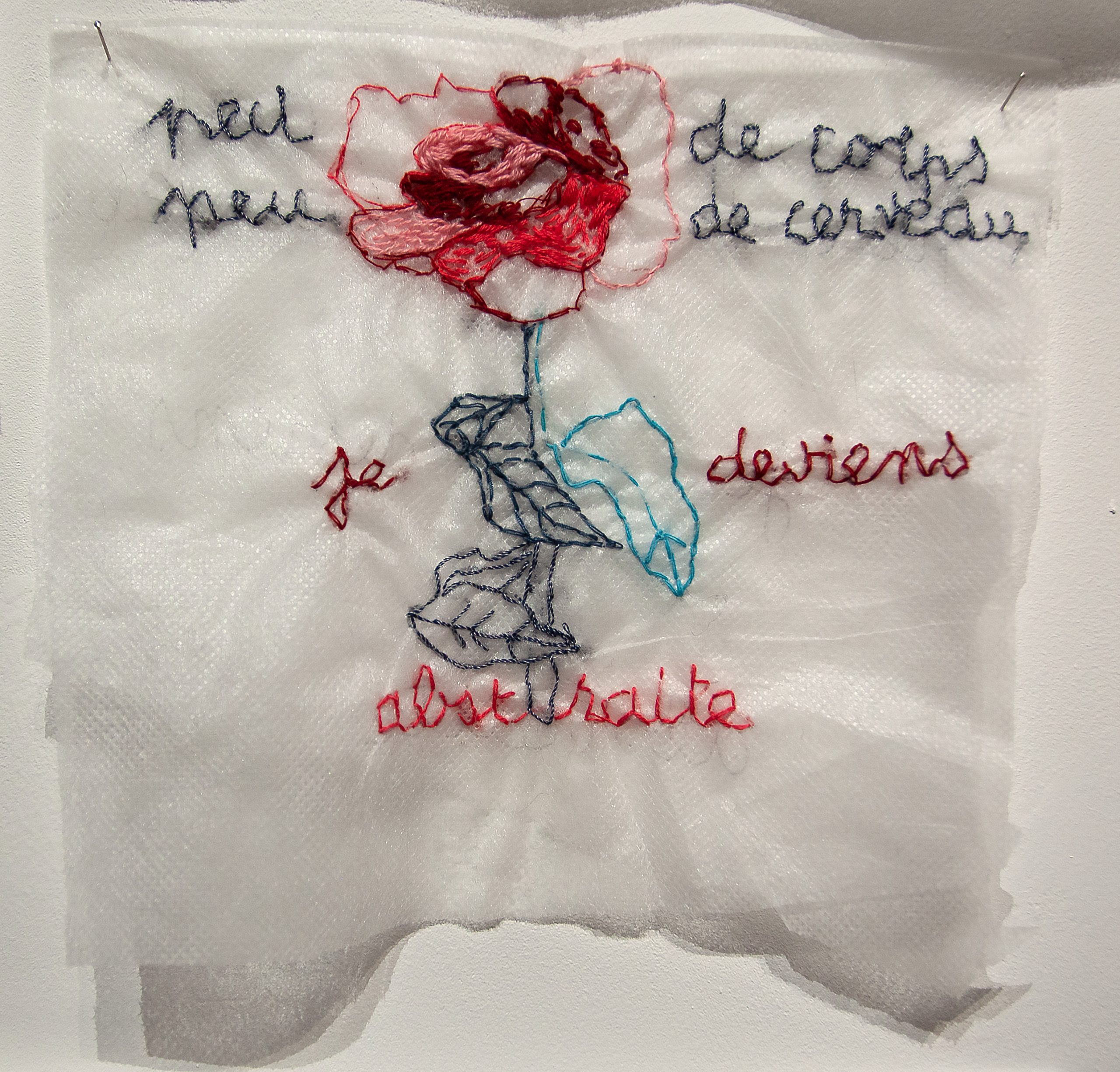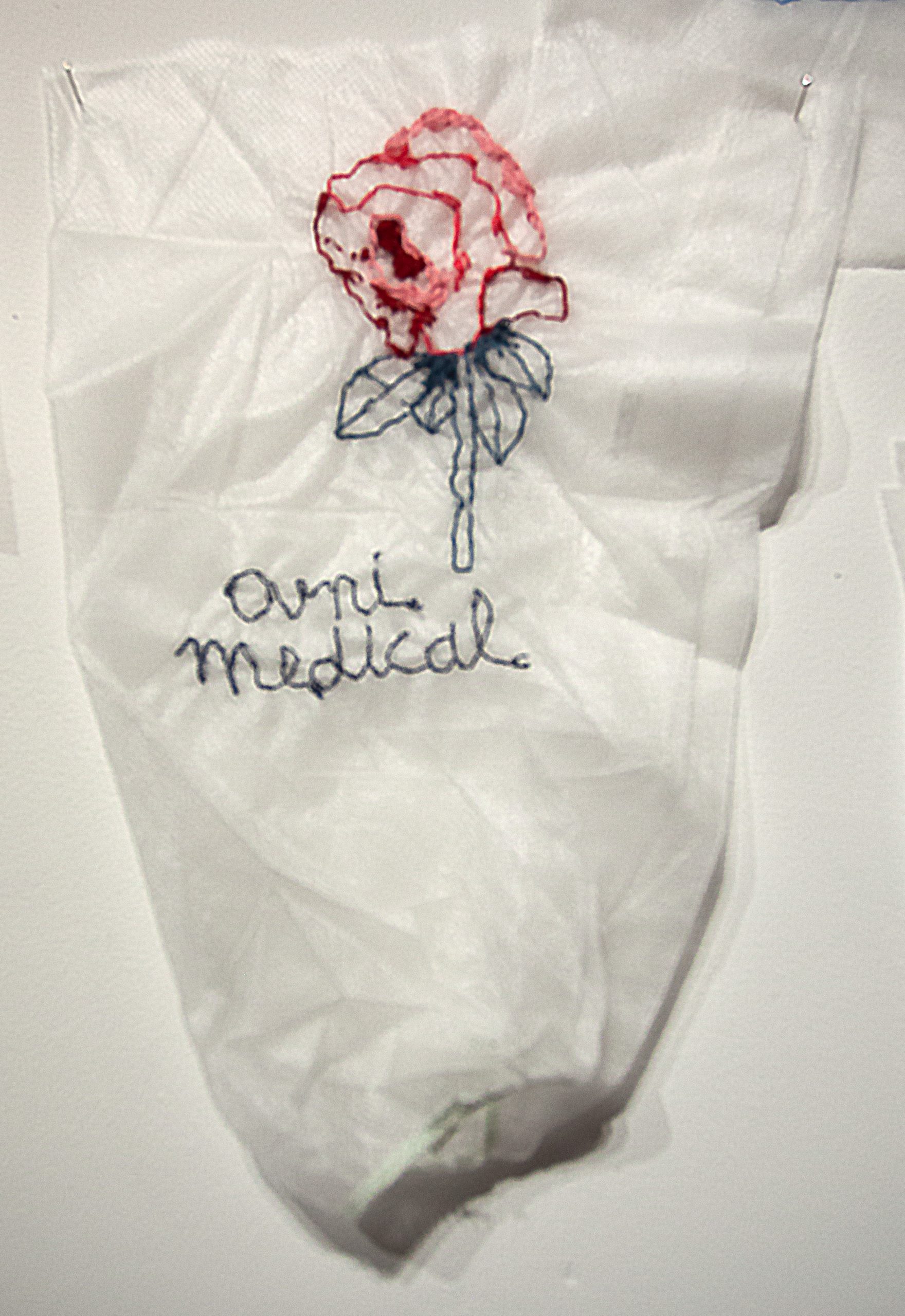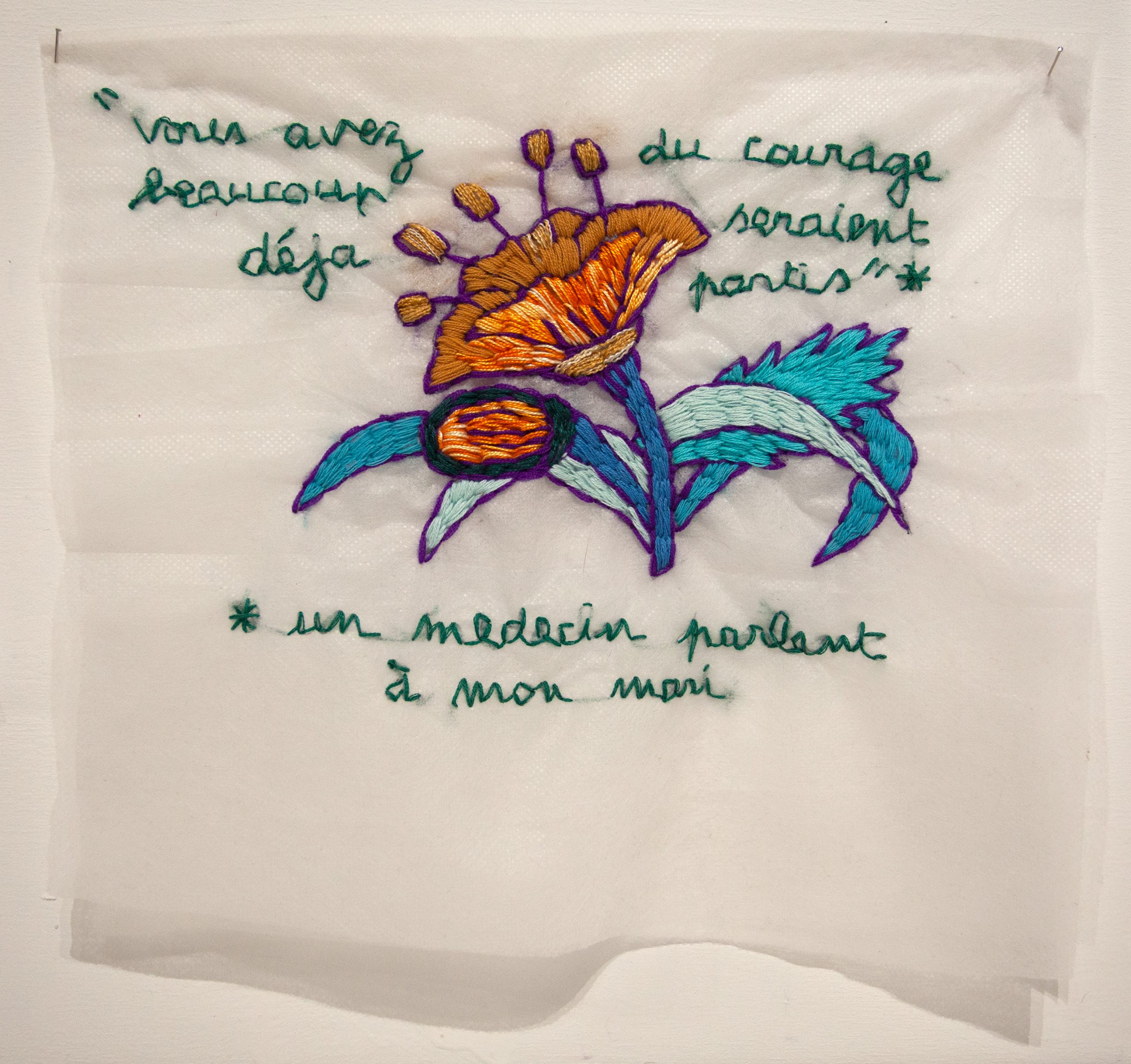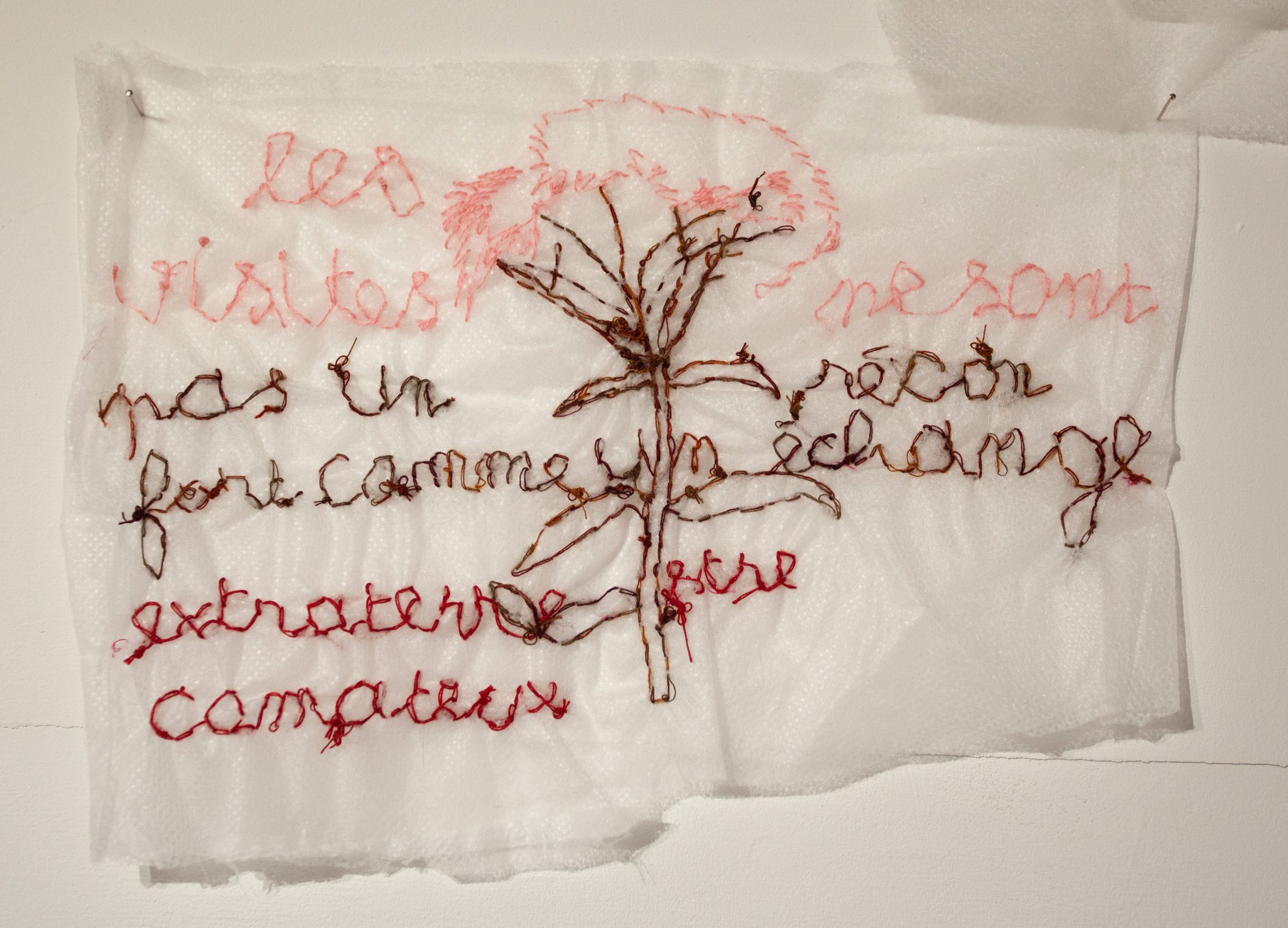 Dans cette exposition elle a imaginé d’évoquer la poétique du « vêtement maladif, revendicatif et chorégraphique » dans l’espace du lit.