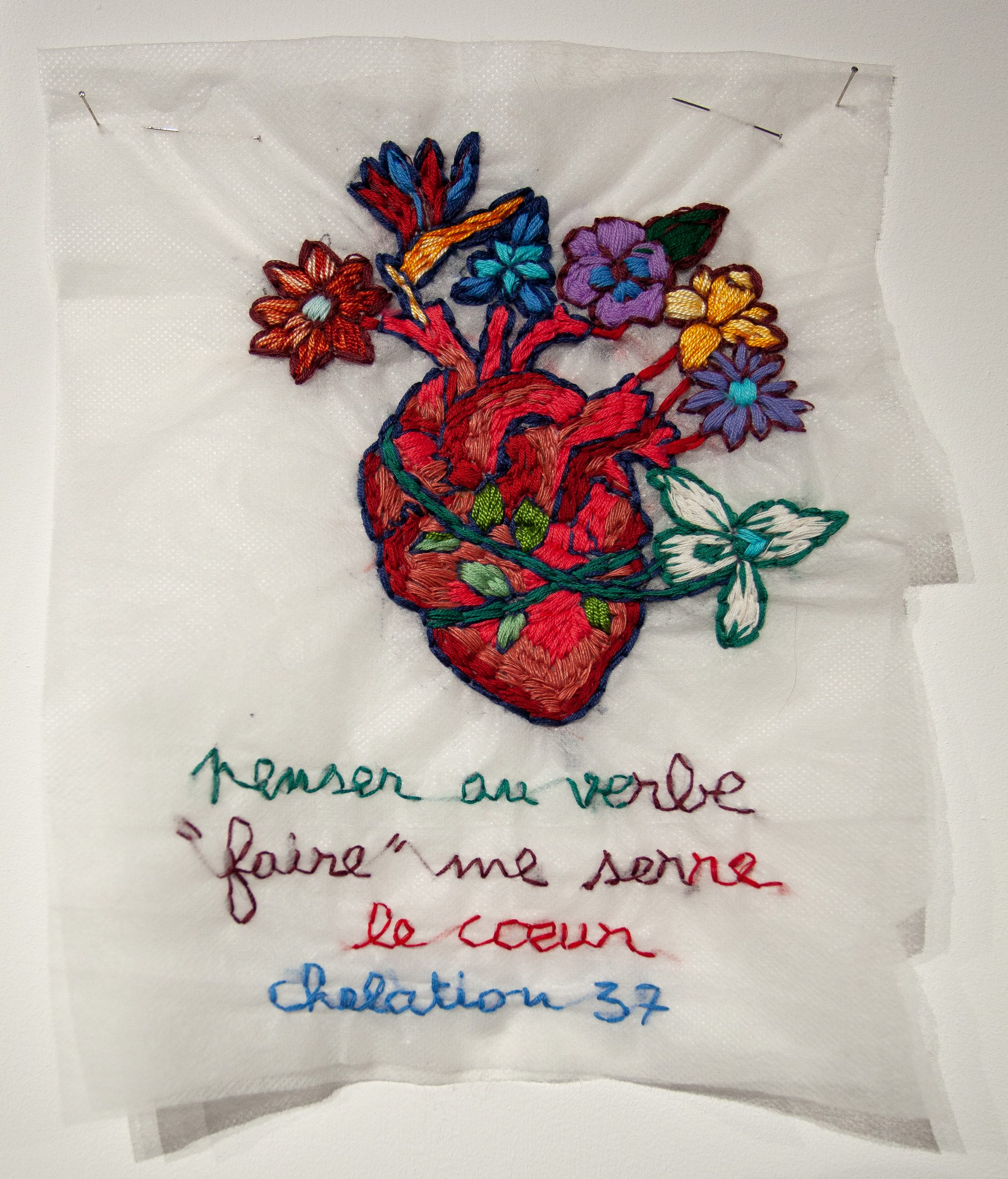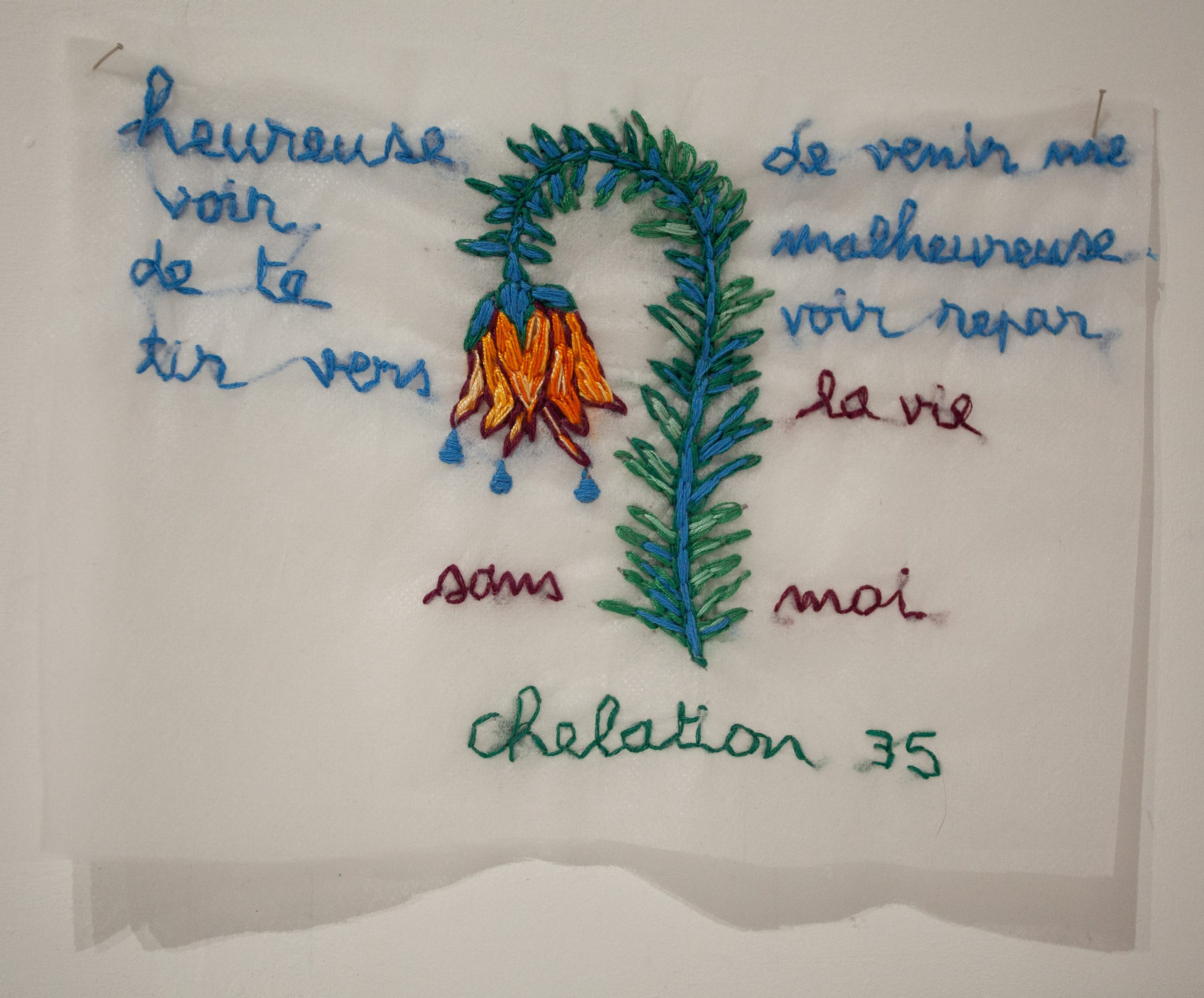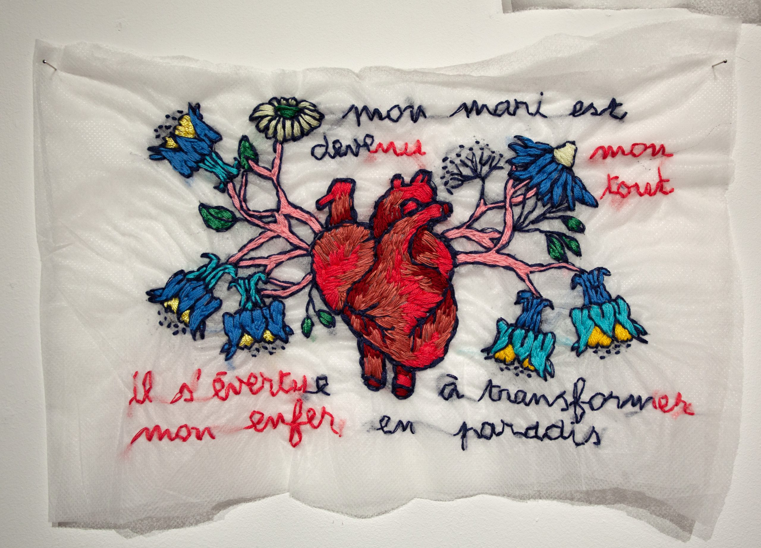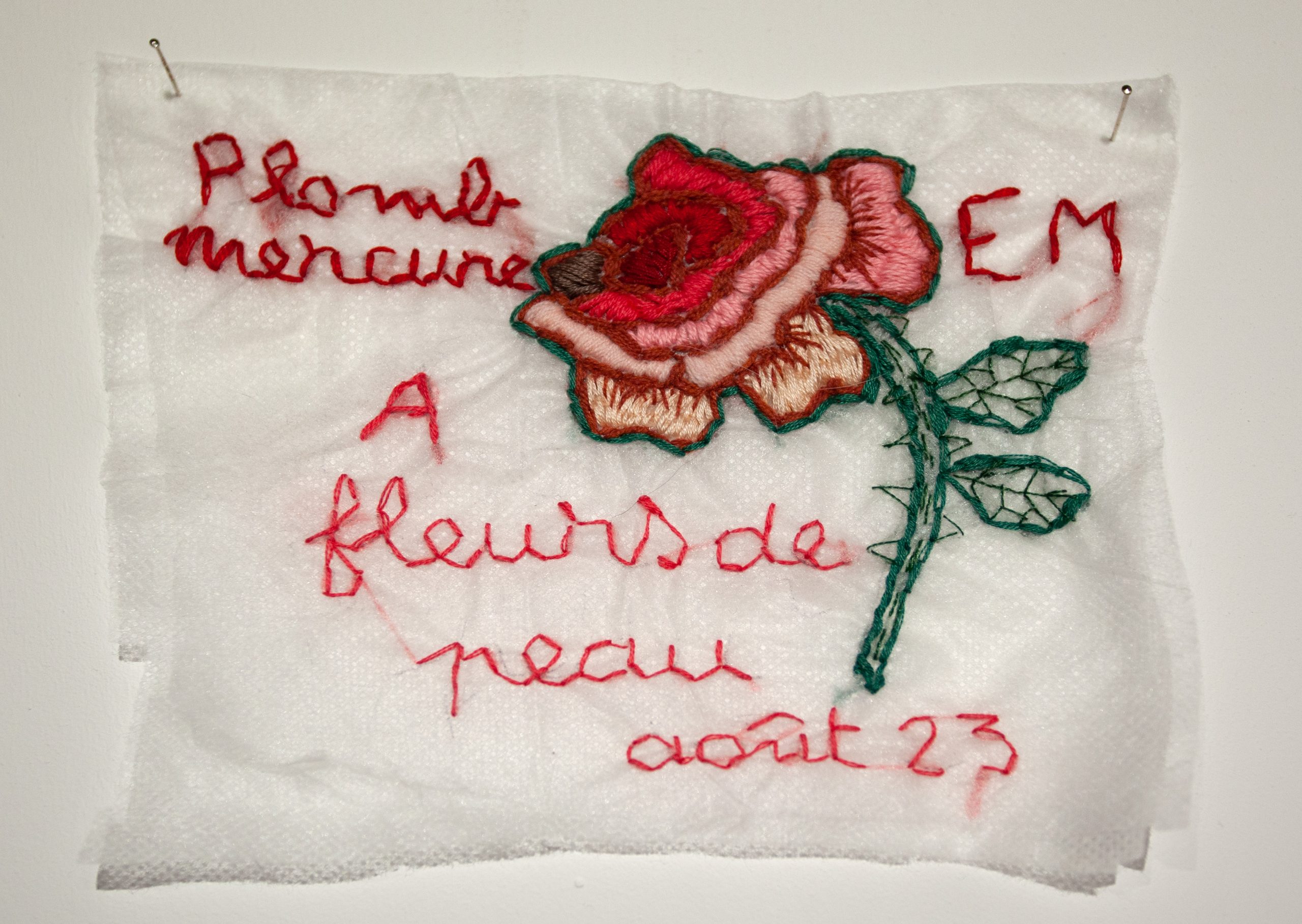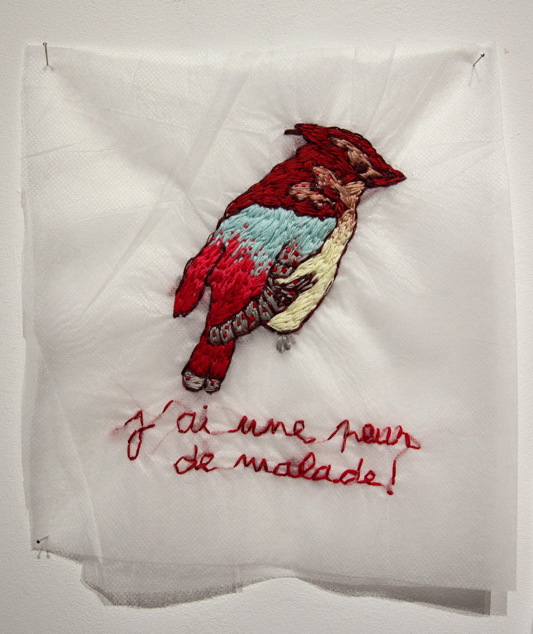 Dans cette exposition elle a imaginé d’évoquer la poétique du « vêtement maladif, revendicatif et chorégraphique » dans l’espace du lit.